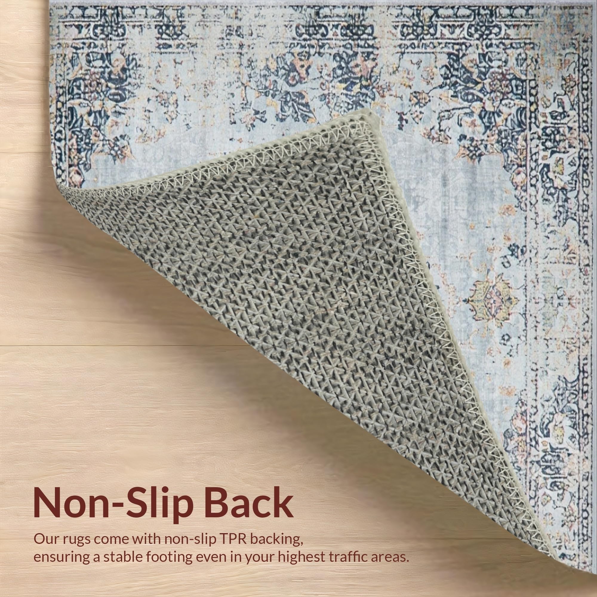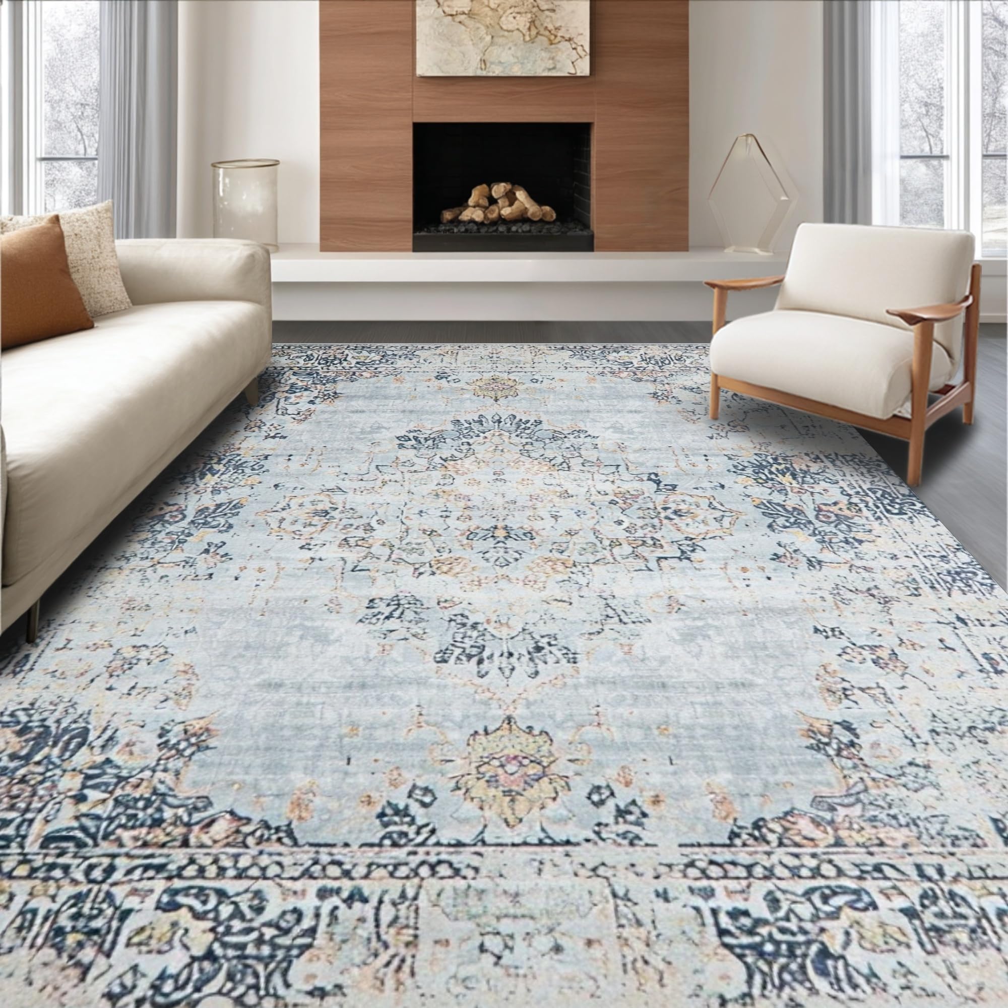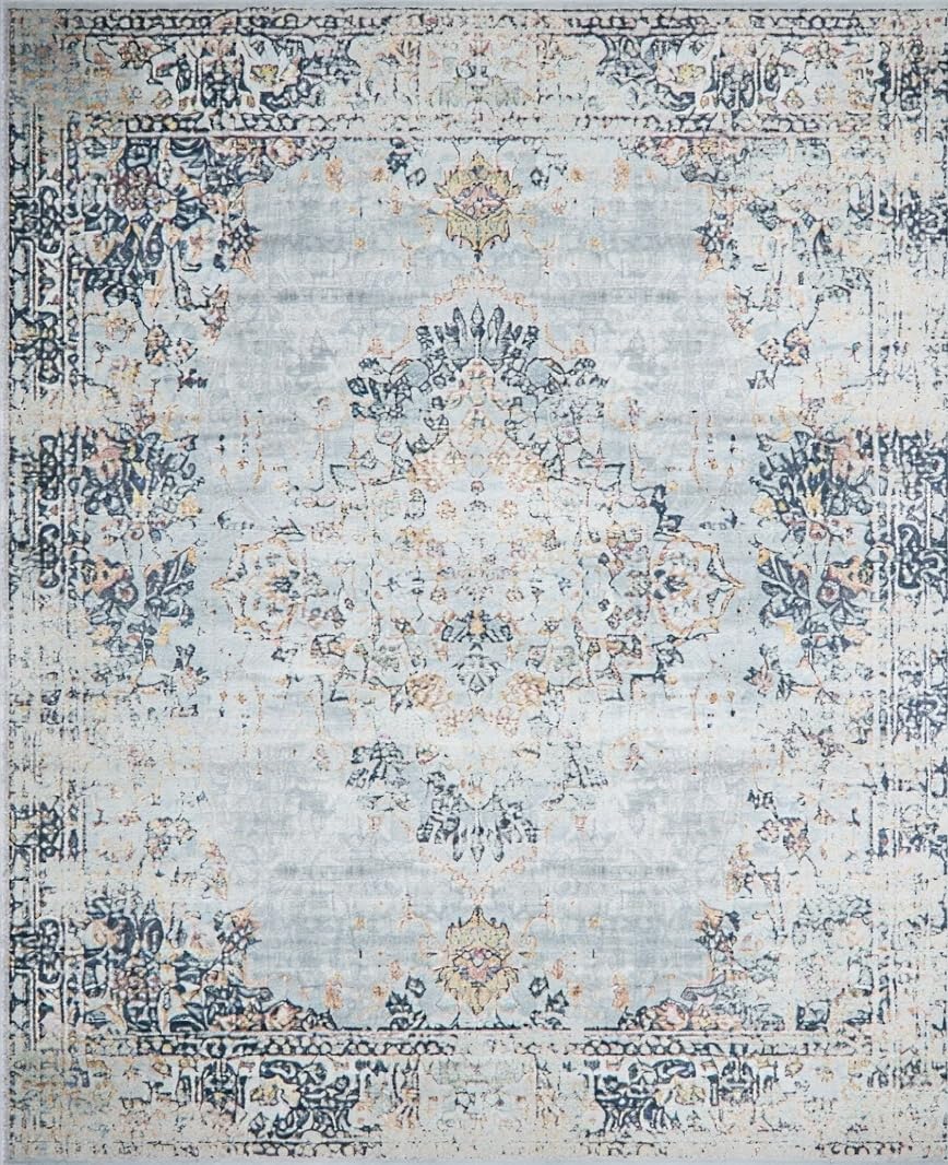 Ultra Soft Area Rug, Non Slip, Stain Resistant, Washable Area Rugs for Living Room, Bedroom, Classic Floral Silver Tones(Gray) Overview: