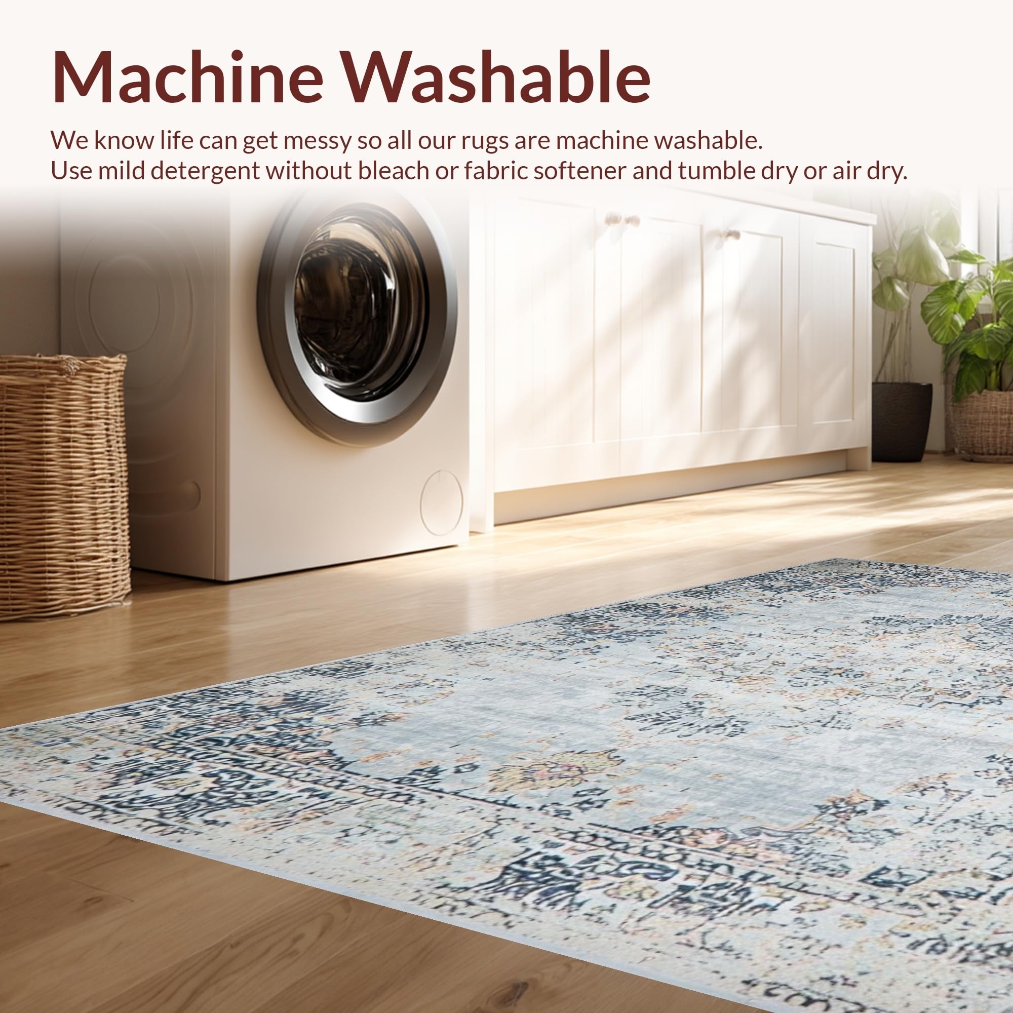 - Machine Washable: Our rugs can be easily thrown in the wash machine.