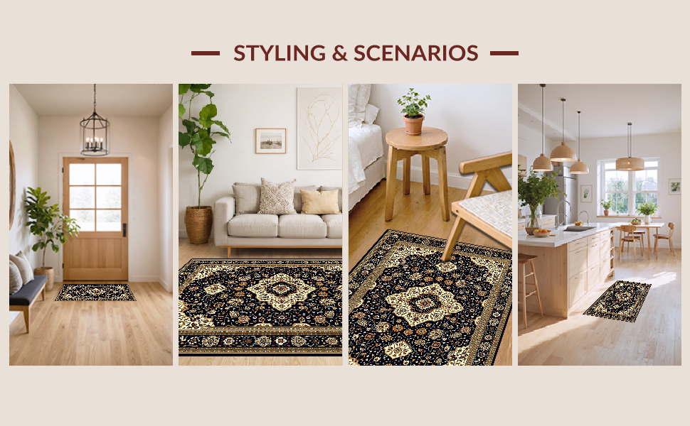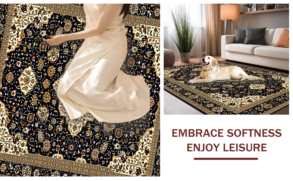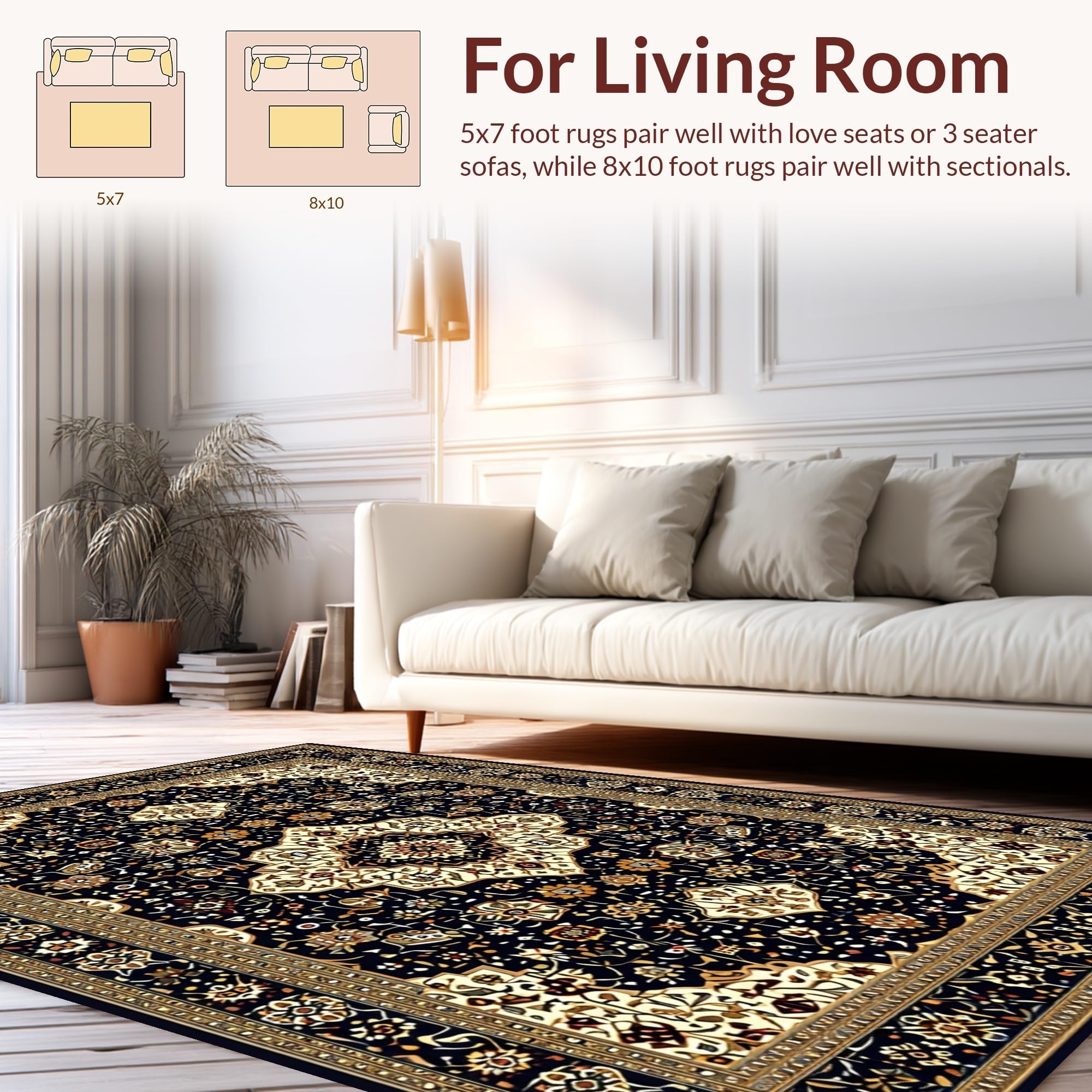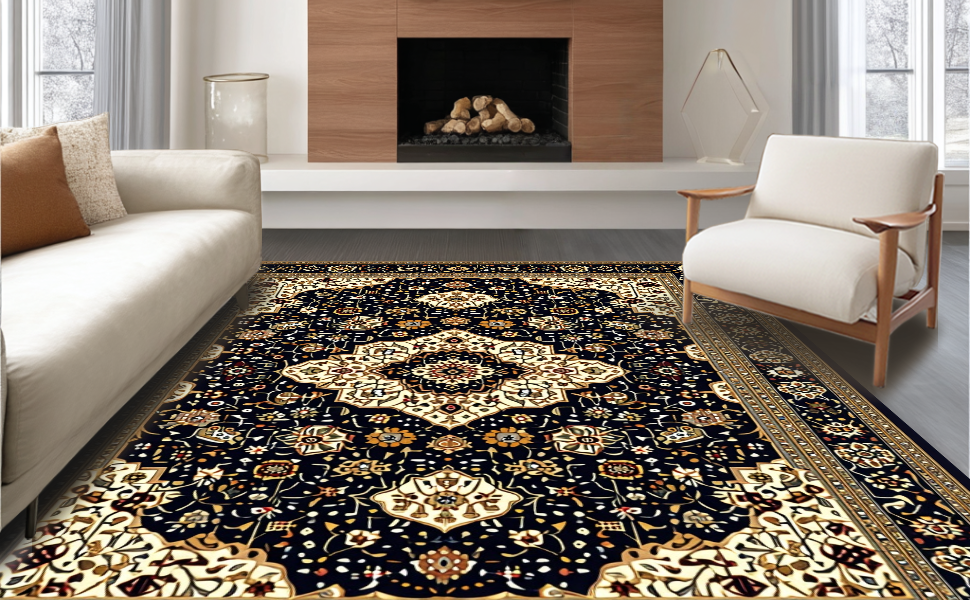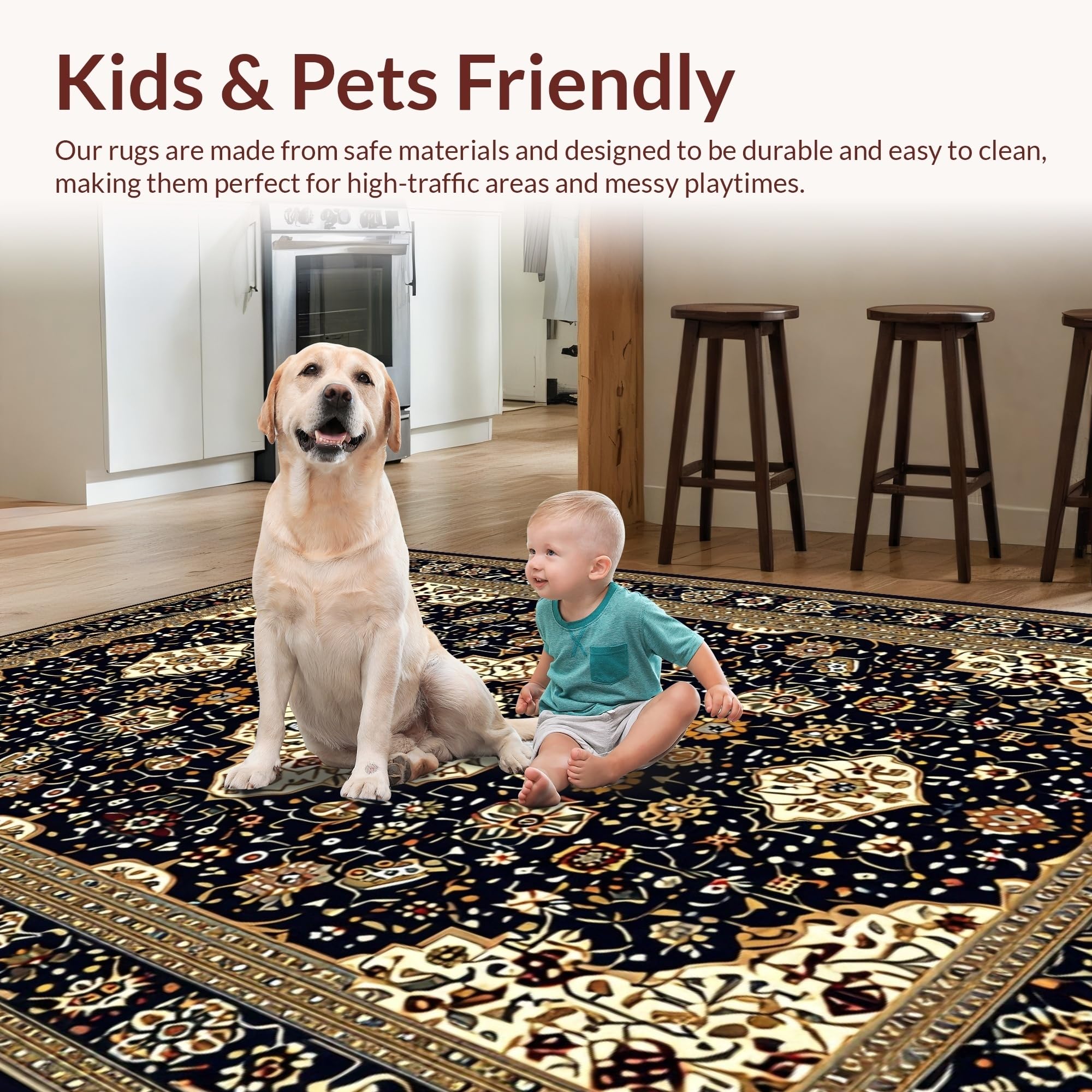Ultra Soft Area Rug, Non Slip, Stain Resistant, Washable Area Rugs for Living Room, Bedroom, Classic Floral Tapestry Inspired(Black) Overview: