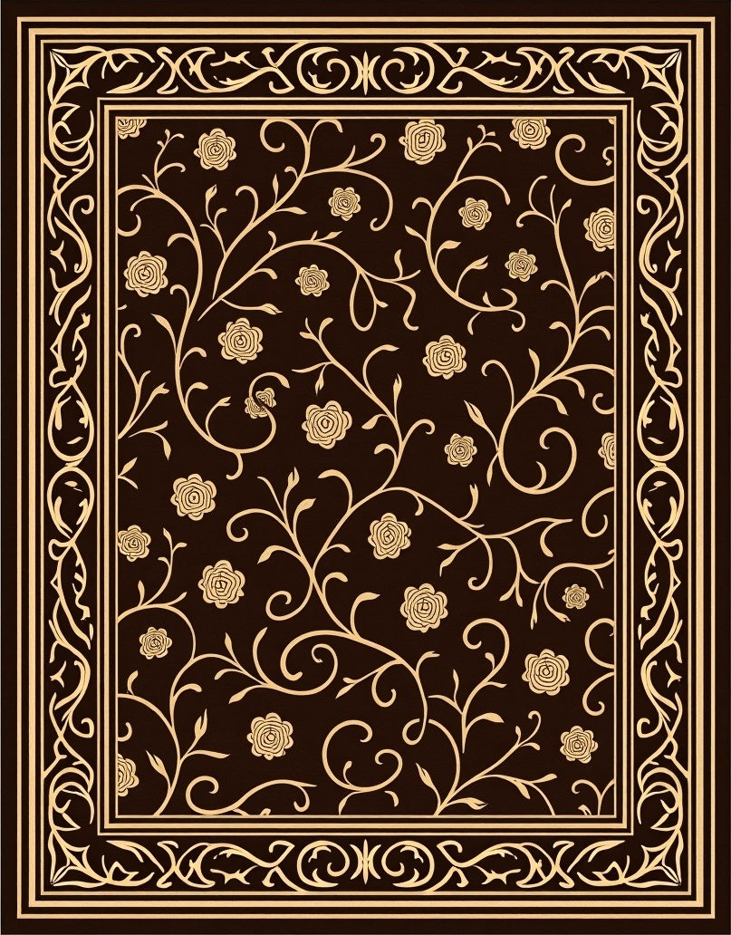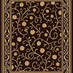 Flatwoven High Traffic Area Rug, Classic Floral Vine Scroll Botanical Embellished Decoration, Non Slip, Stain Resistant, Washable Area Rugs for Living Room, Bedroom (Brown) Overview: