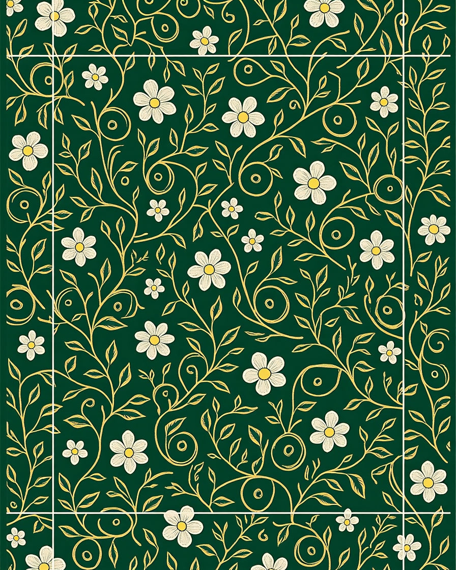 Classic Floral Vine with Interlocking Leaf and Blossom Design(Gold)