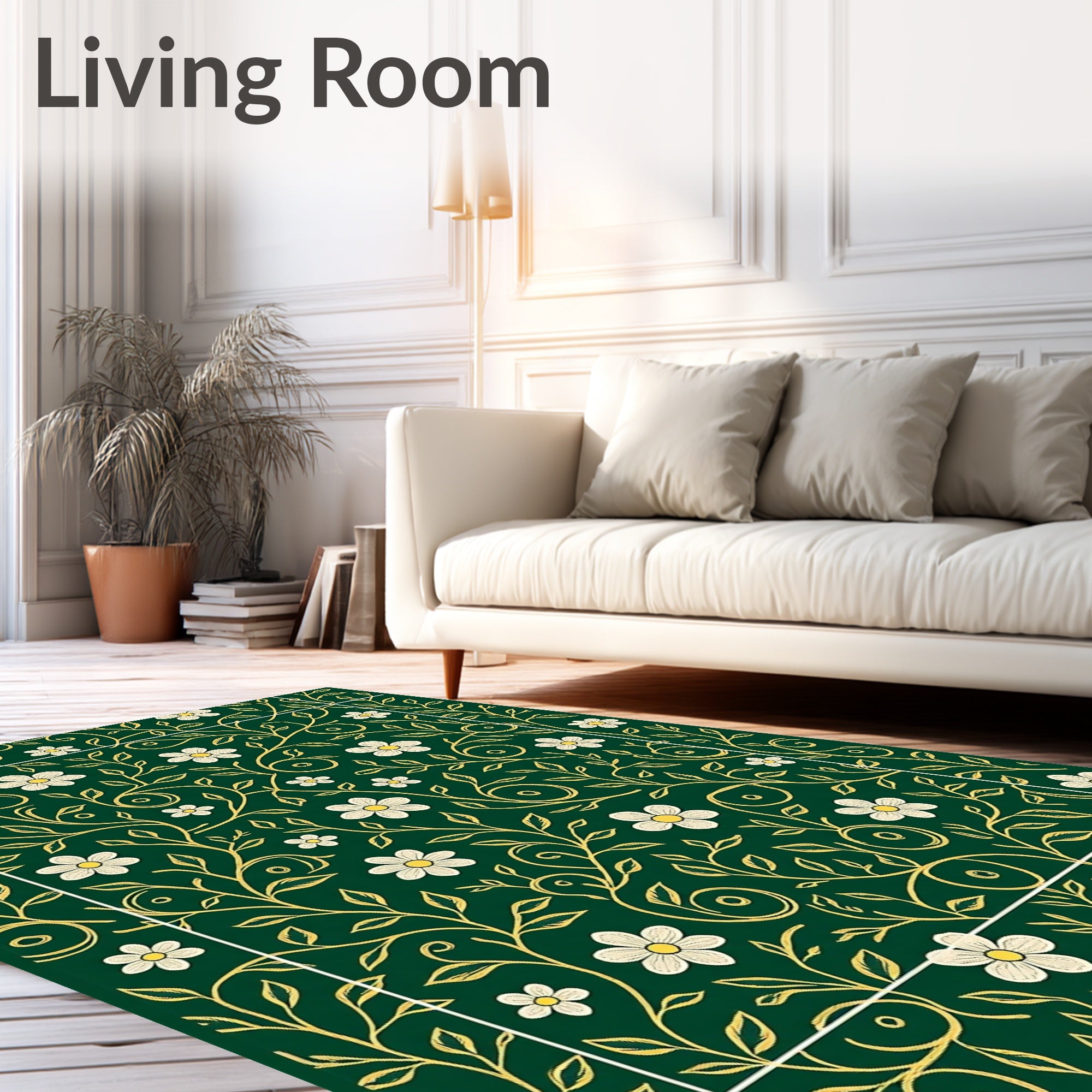 Flatwoven High Traffic Area Rug, Classic Floral Vine with Interlocking Leaf and Blossom Design, Non Slip, Stain Resistant, Washable Area Rugs for Living Room, Bedroom (Gold) Overview: