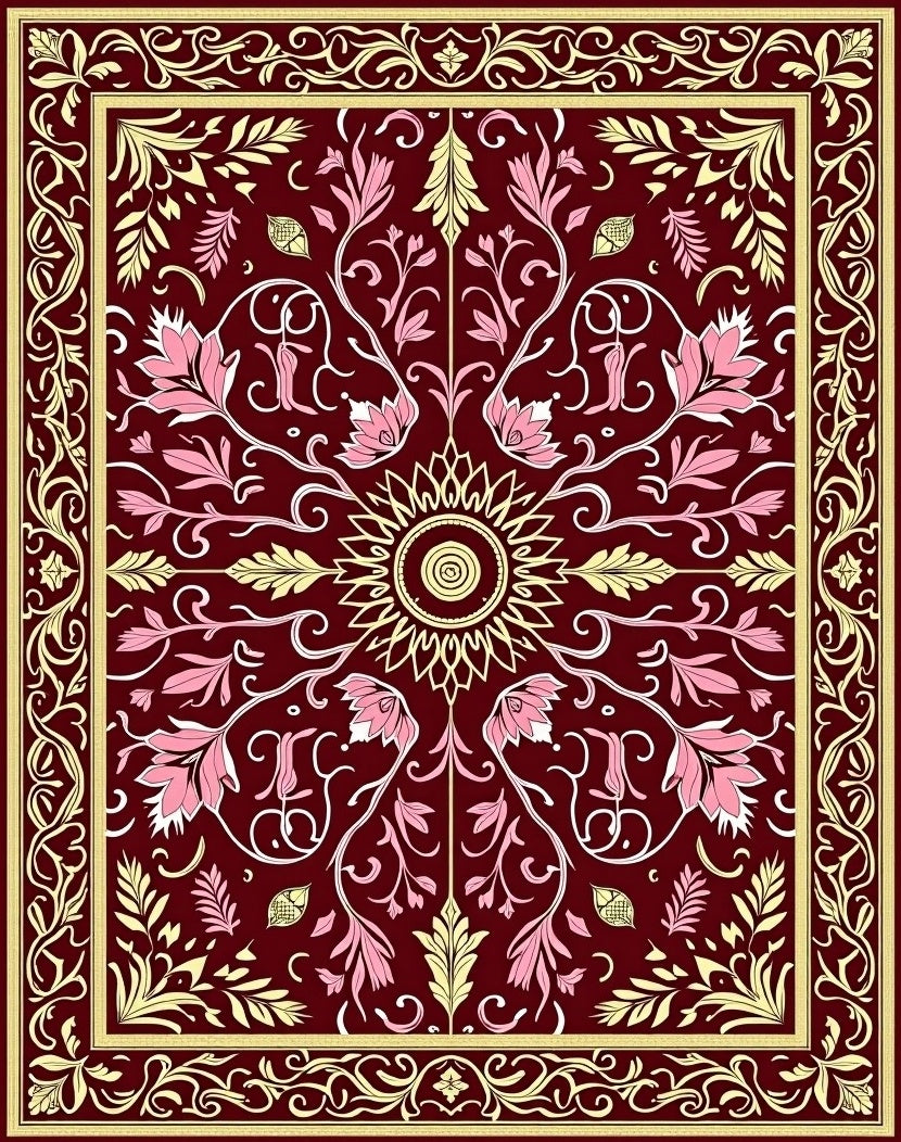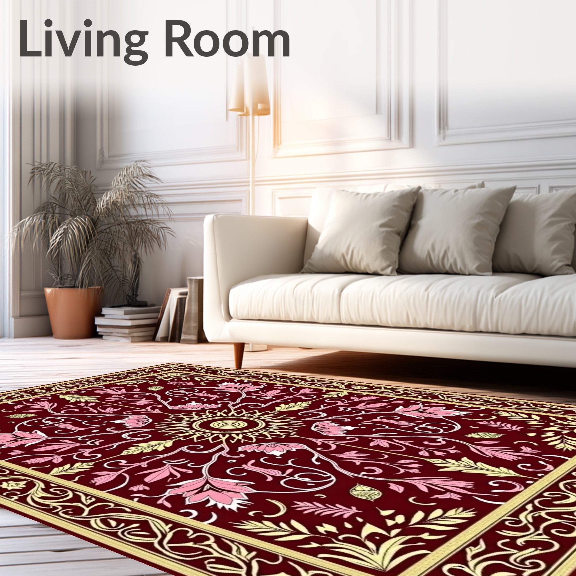 Ultra Soft Area Rug, Non Slip, Stain Resistant, Washable Area Rugs for Living Room, Bedroom, Classic Forest Harvest Damask Style Machine(Red) Overview: