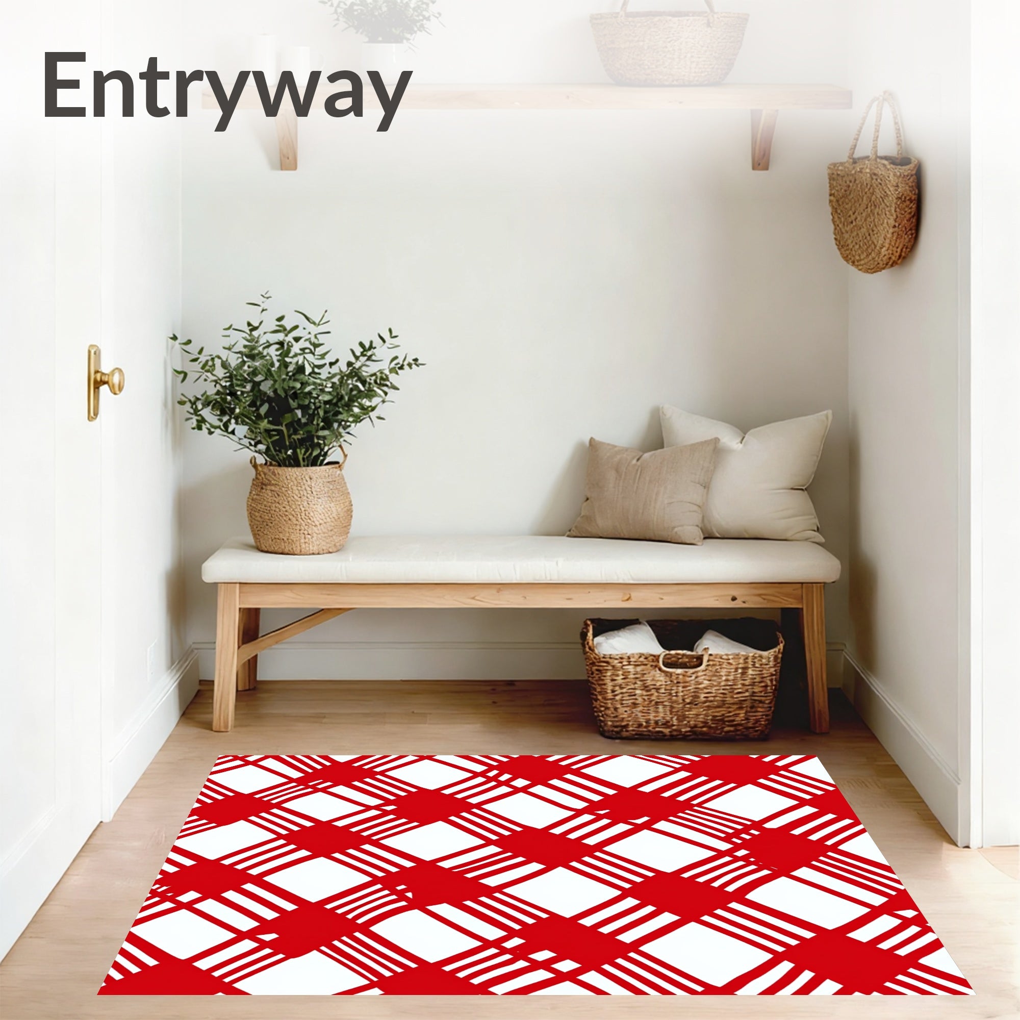 Ultra Soft Area Rug, Non Slip, Stain Resistant, Washable Area Rugs for Living Room, Bedroom, Classic Gingham Grid Design with Alternating Configuration(Red) Overview: