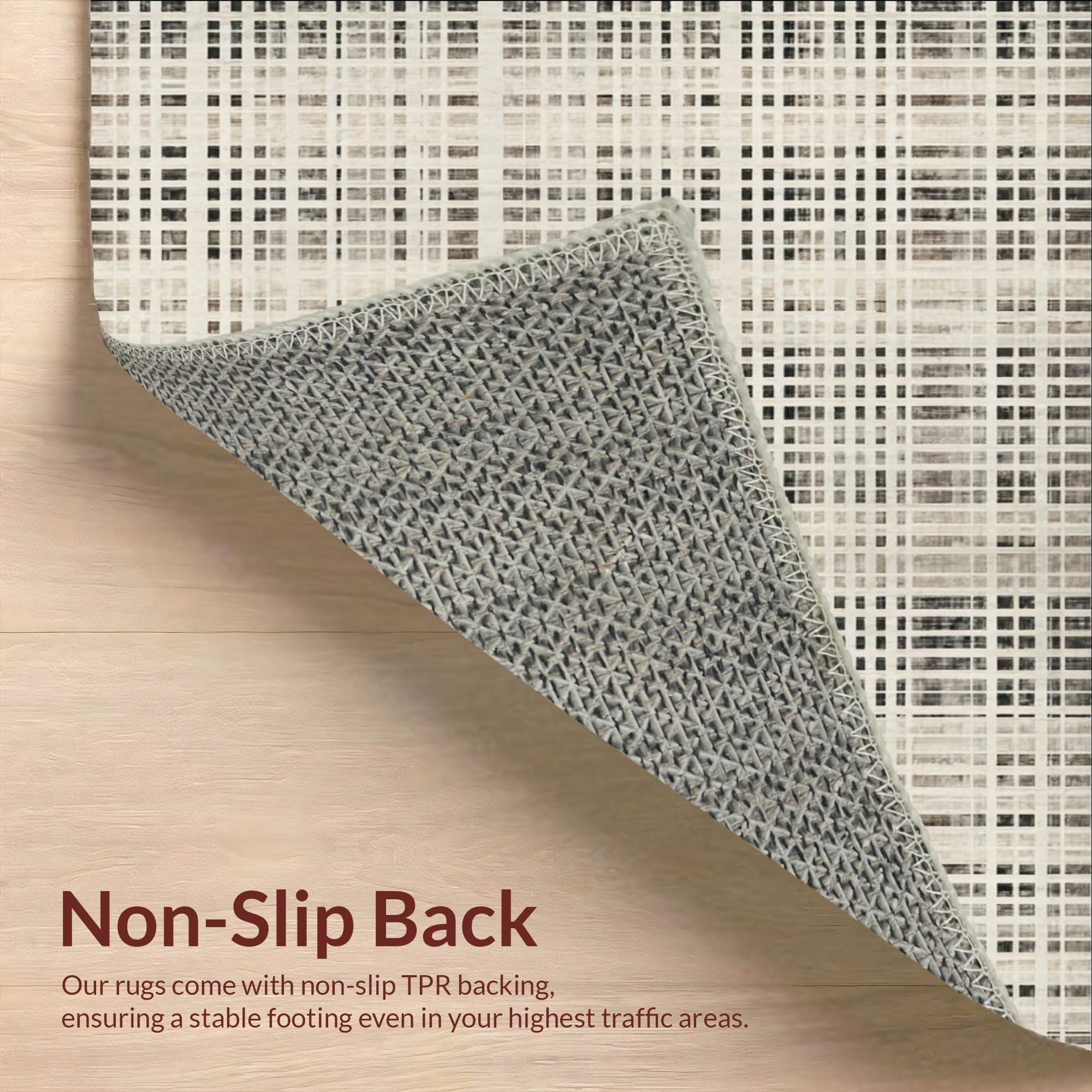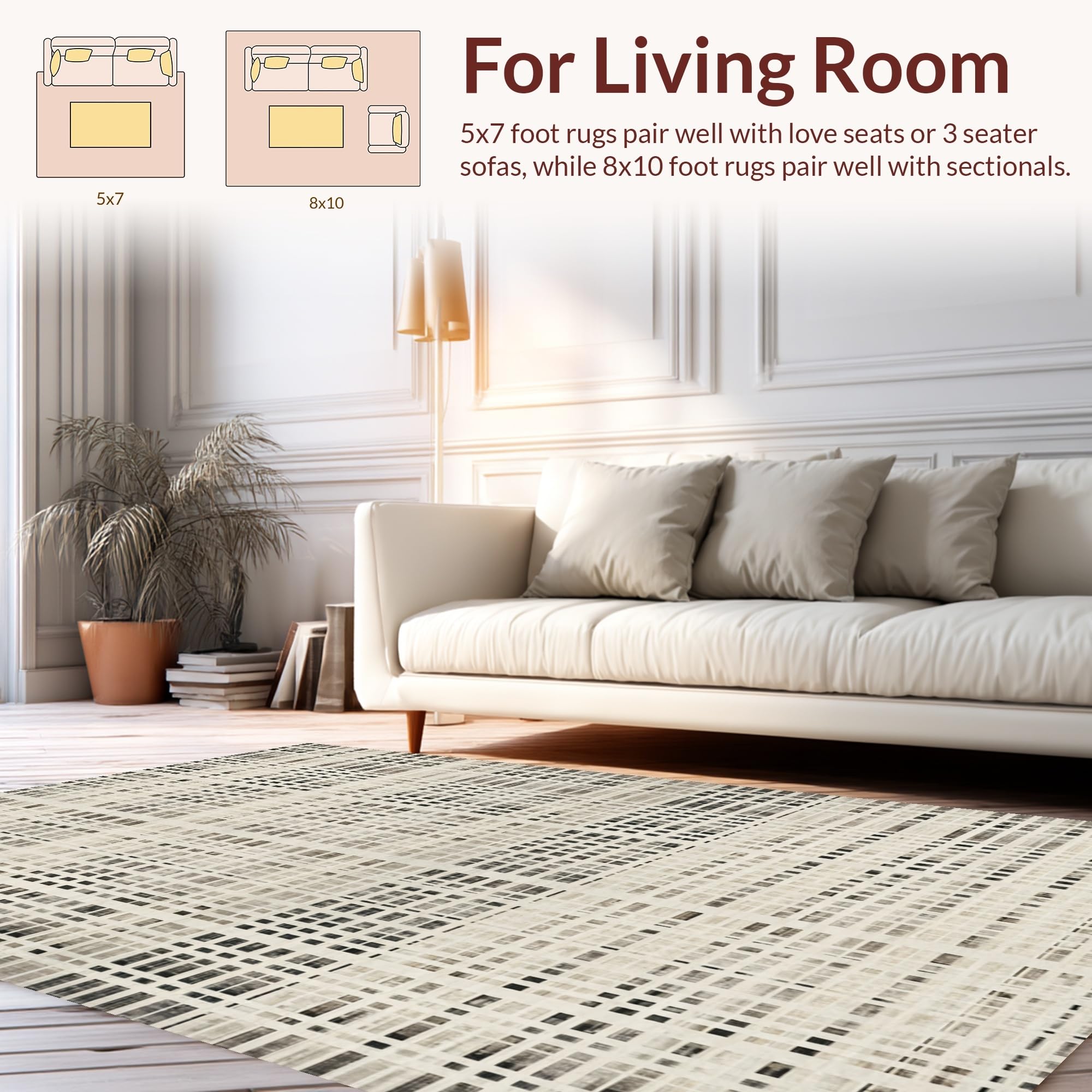 Ultra Soft Area Rug, Non Slip, Stain Resistant, Washable Area Rugs for Living Room, Bedroom, Classic Graphite Stripe Rug Featuring Minimalist Parallel Band Motif(Beige) Overview: