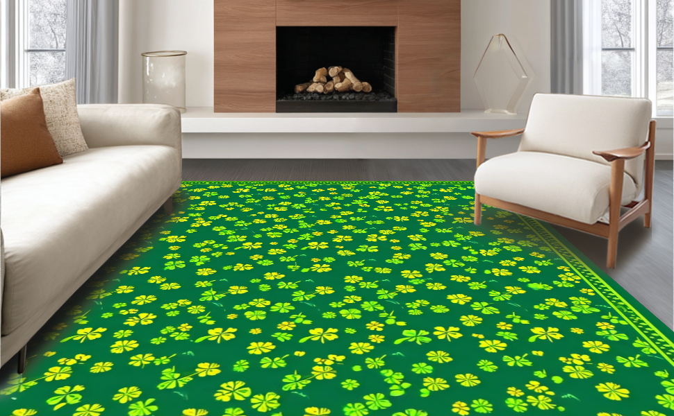 Ultra Soft Area Rug, Non Slip, Stain Resistant, Washable Area Rugs for Living Room, Bedroom, Classic Green and White Geometric Style(Green) Overview: