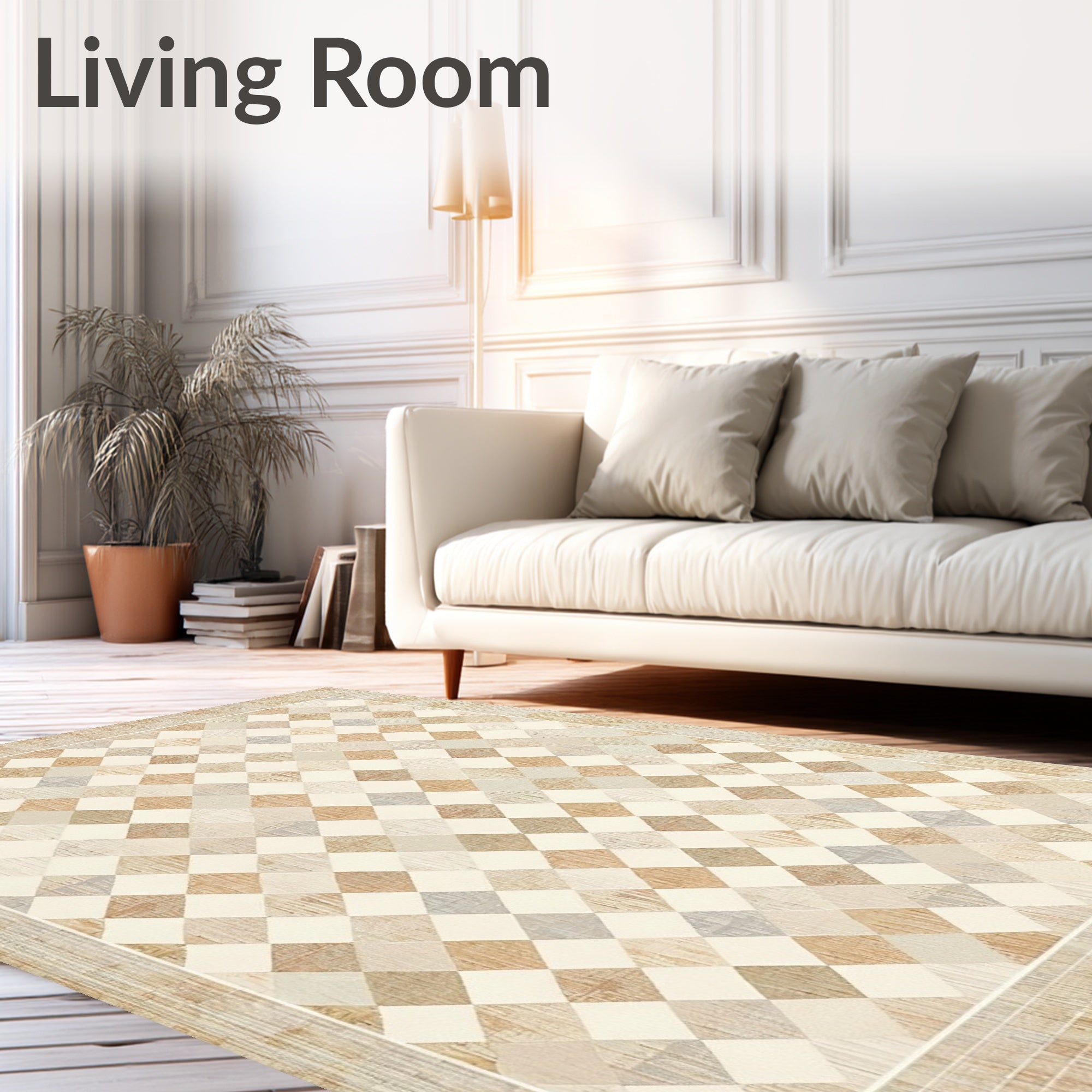 Ultra Soft Area Rug, Non Slip, Stain Resistant, Washable Area Rugs for Living Room, Bedroom, Classic Harlequin Diamond in Beige Hues(Beige) Overview: