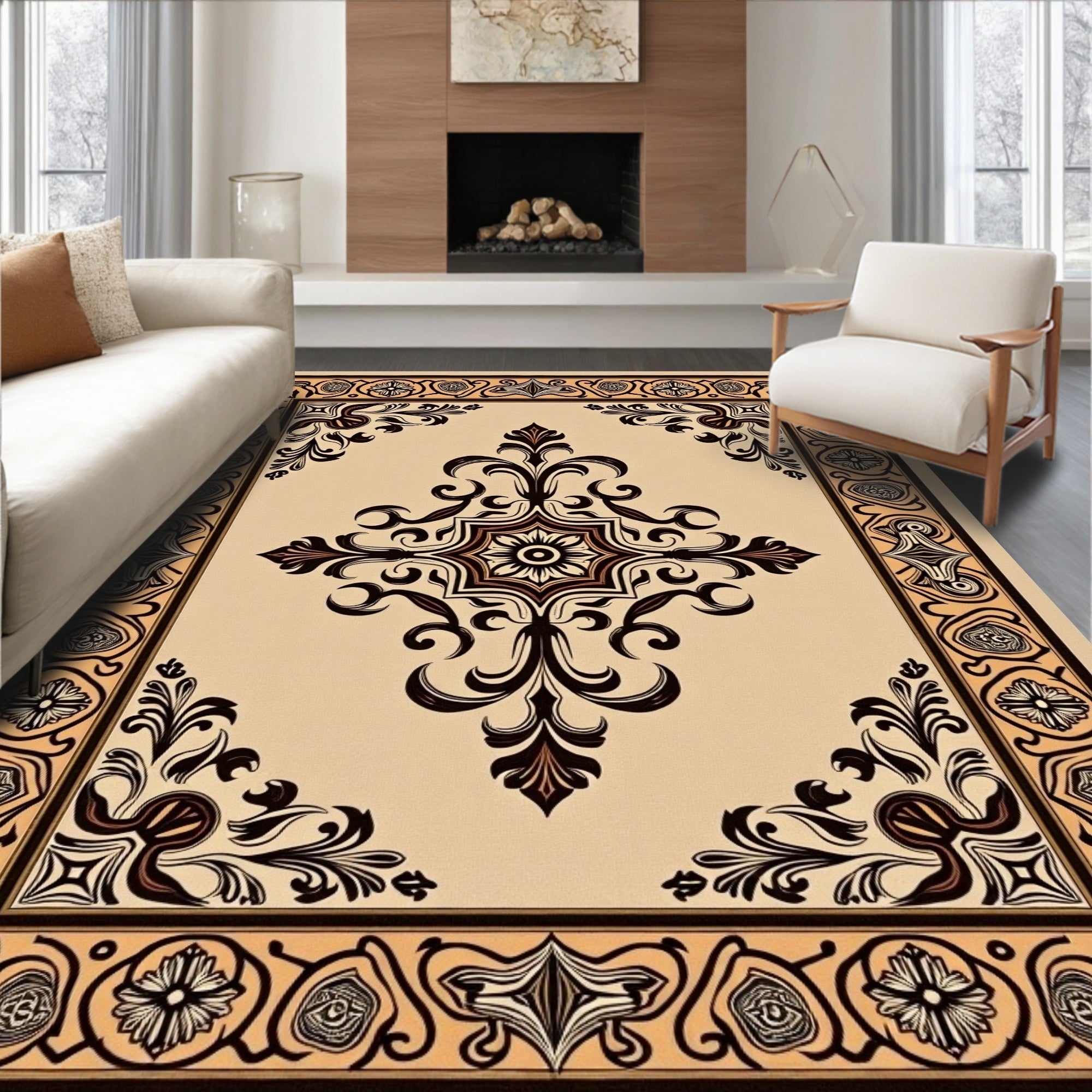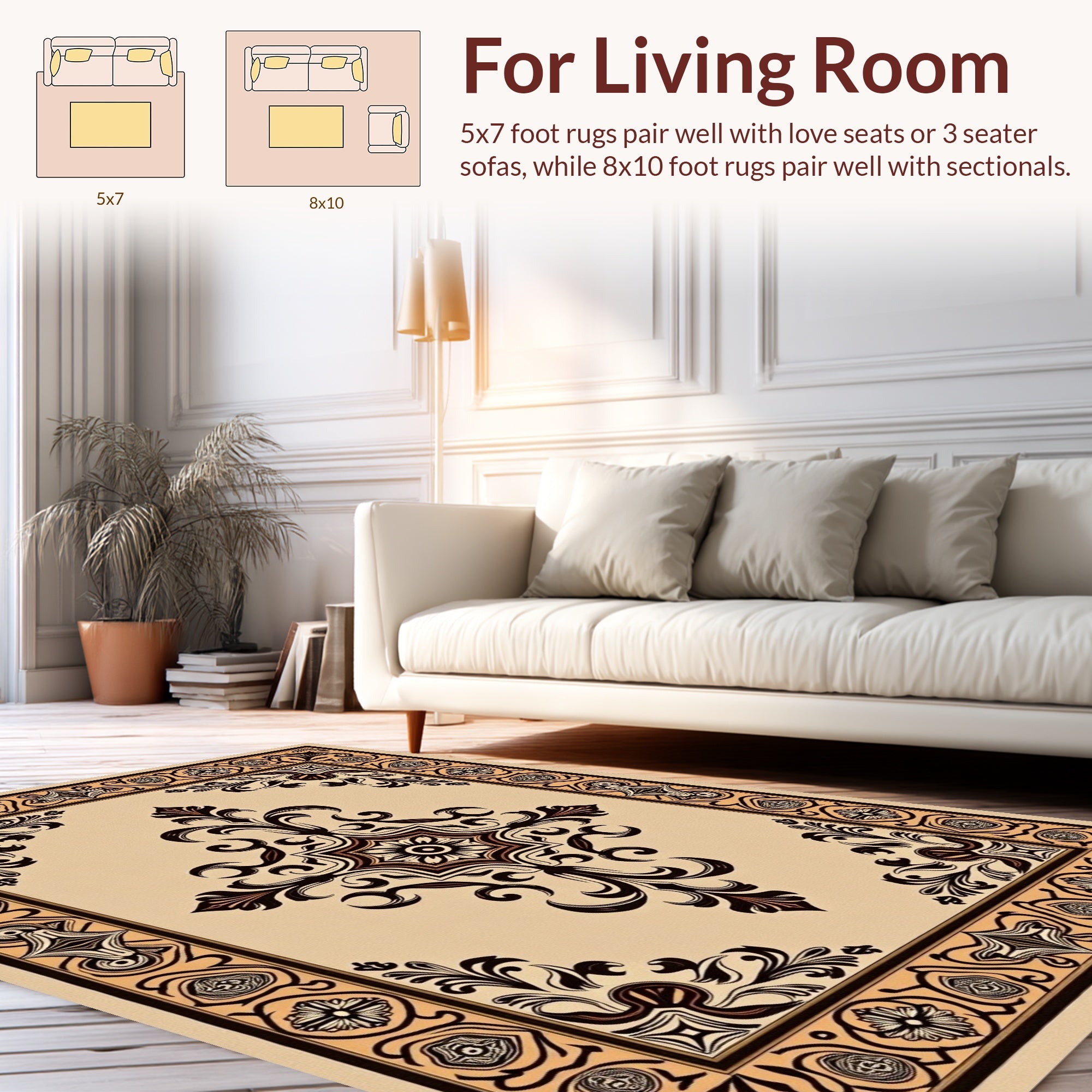Ultra Soft Area Rug, Non Slip, Stain Resistant, Washable Area Rugs for Living Room, Bedroom, Classic Heritage Style with Ornate Damask(Beige) Overview: