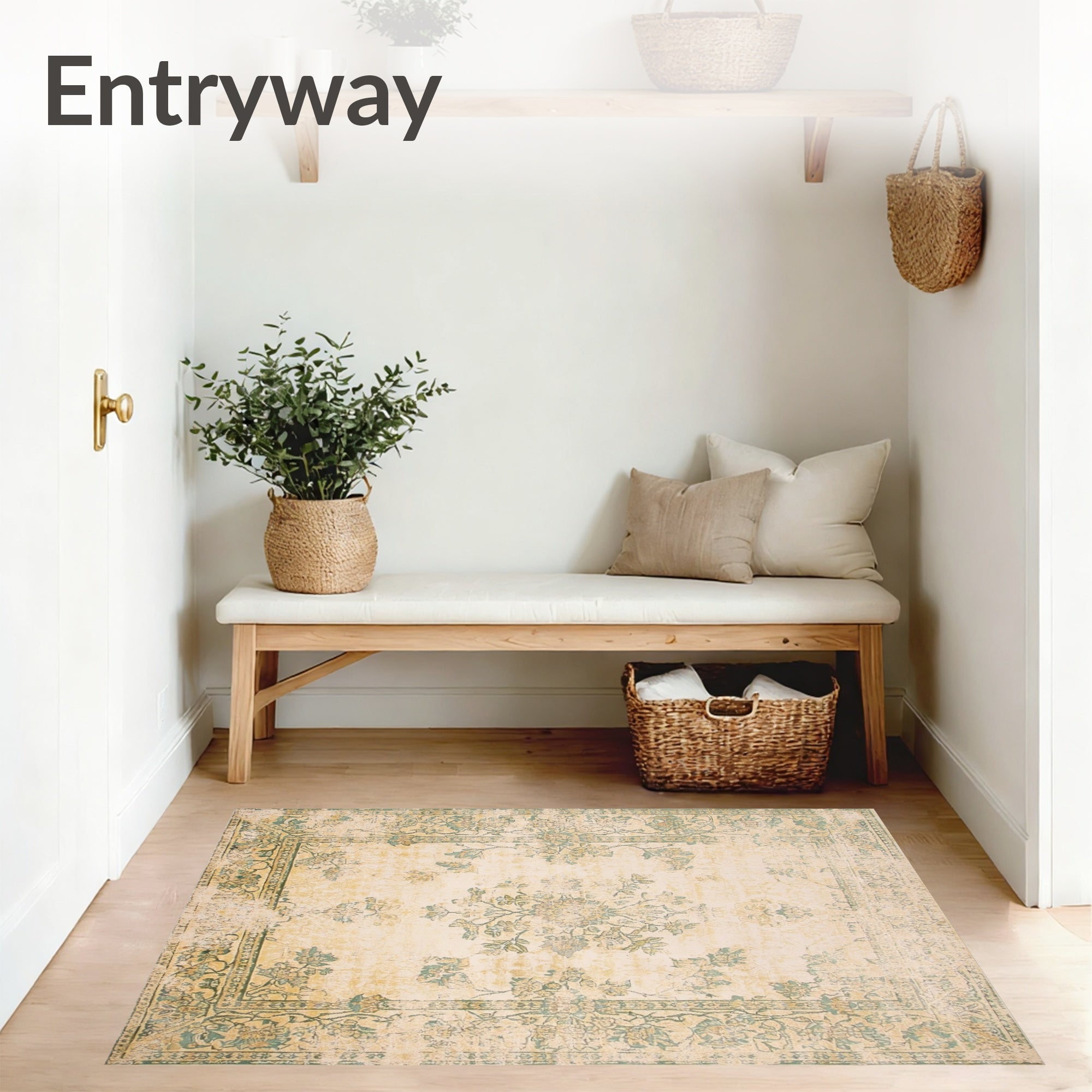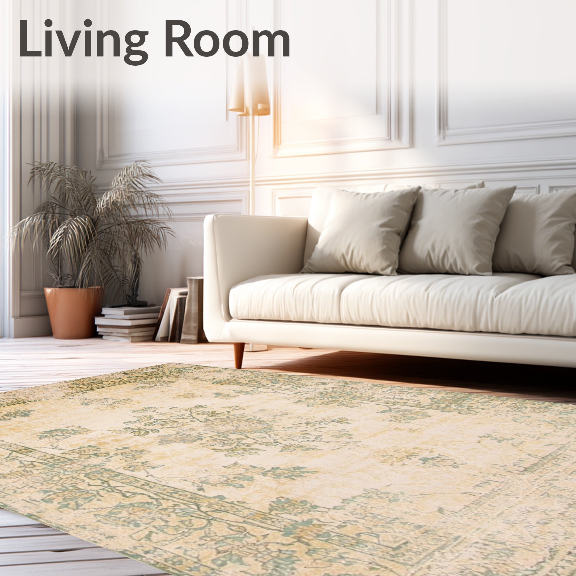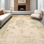 Ultra Soft Area Rug, Non Slip, Stain Resistant, Washable Area Rugs for Living Room, Bedroom, Classic Heritage with Antique Botanical Motifs and Weathered Detailing(Beige) Overview: