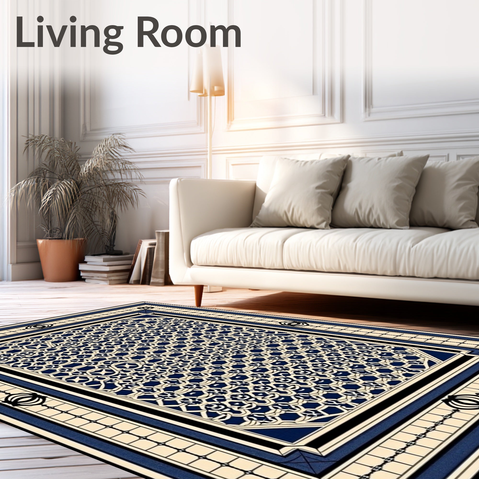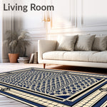Ultra Soft Area Rug, Non Slip, Stain Resistant, Washable Area Rugs for Living Room, Bedroom, Classic Hexagonal Mosaic with Elegant Surrounding Frame Design(Blue) Overview: