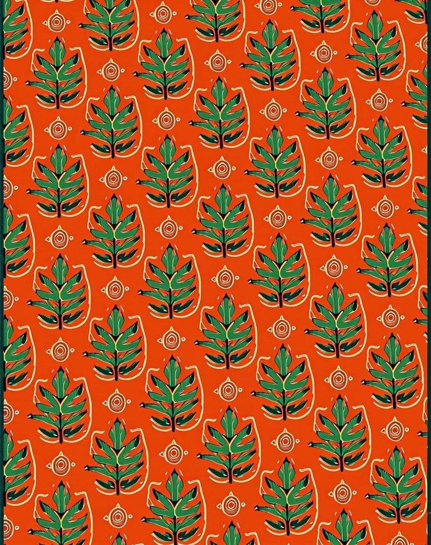 Classic Holiday Inspired Interlocking Pine Needle and Berry(Orange)