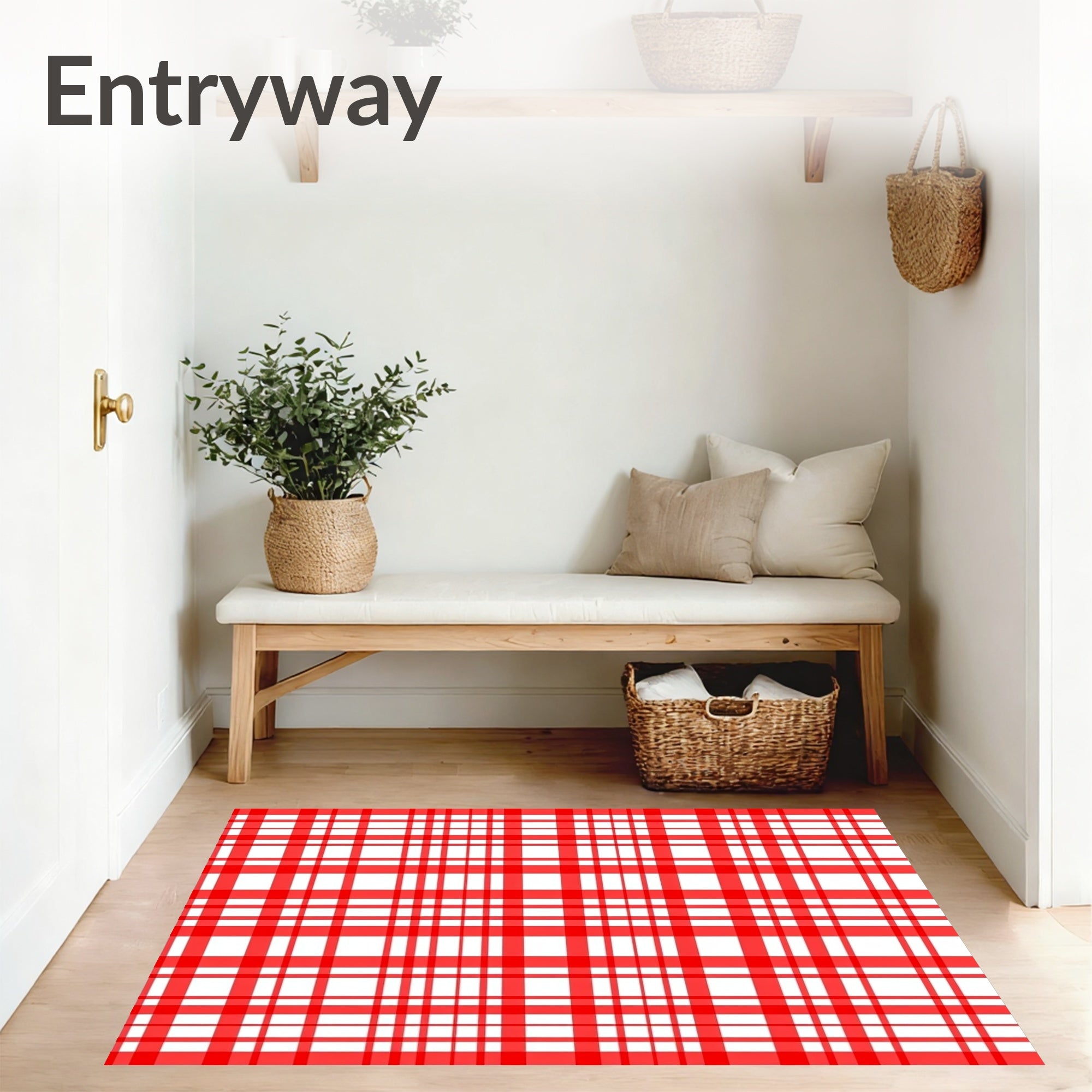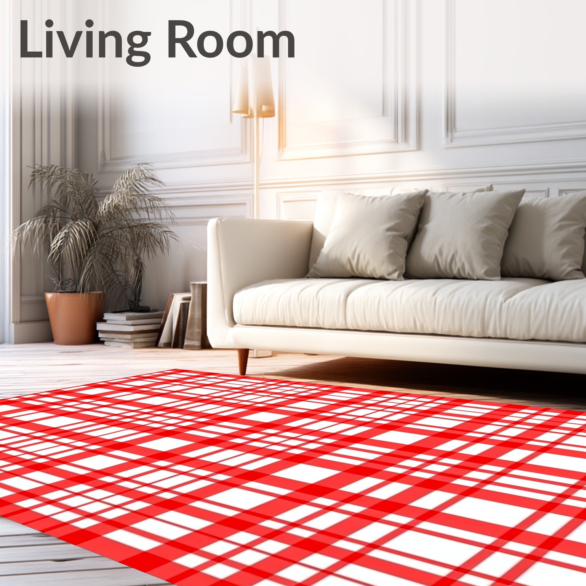 Ultra Soft Area Rug, Non Slip, Stain Resistant, Washable Area Rugs for Living Room, Bedroom, Classic Interlocking Buffalo Check Festive Plaid Design(Red) Overview: