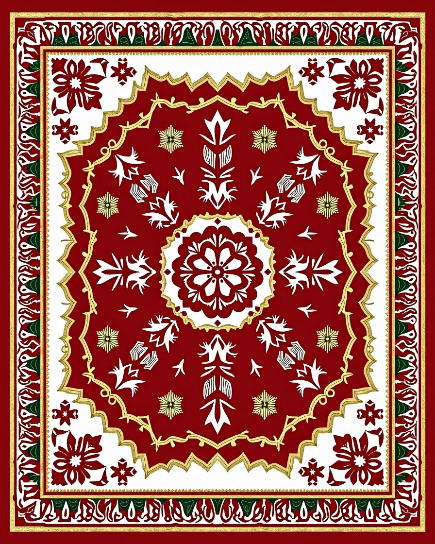 Classic Interlocking Festive Snow Medallion with Vintage Borders(Red)