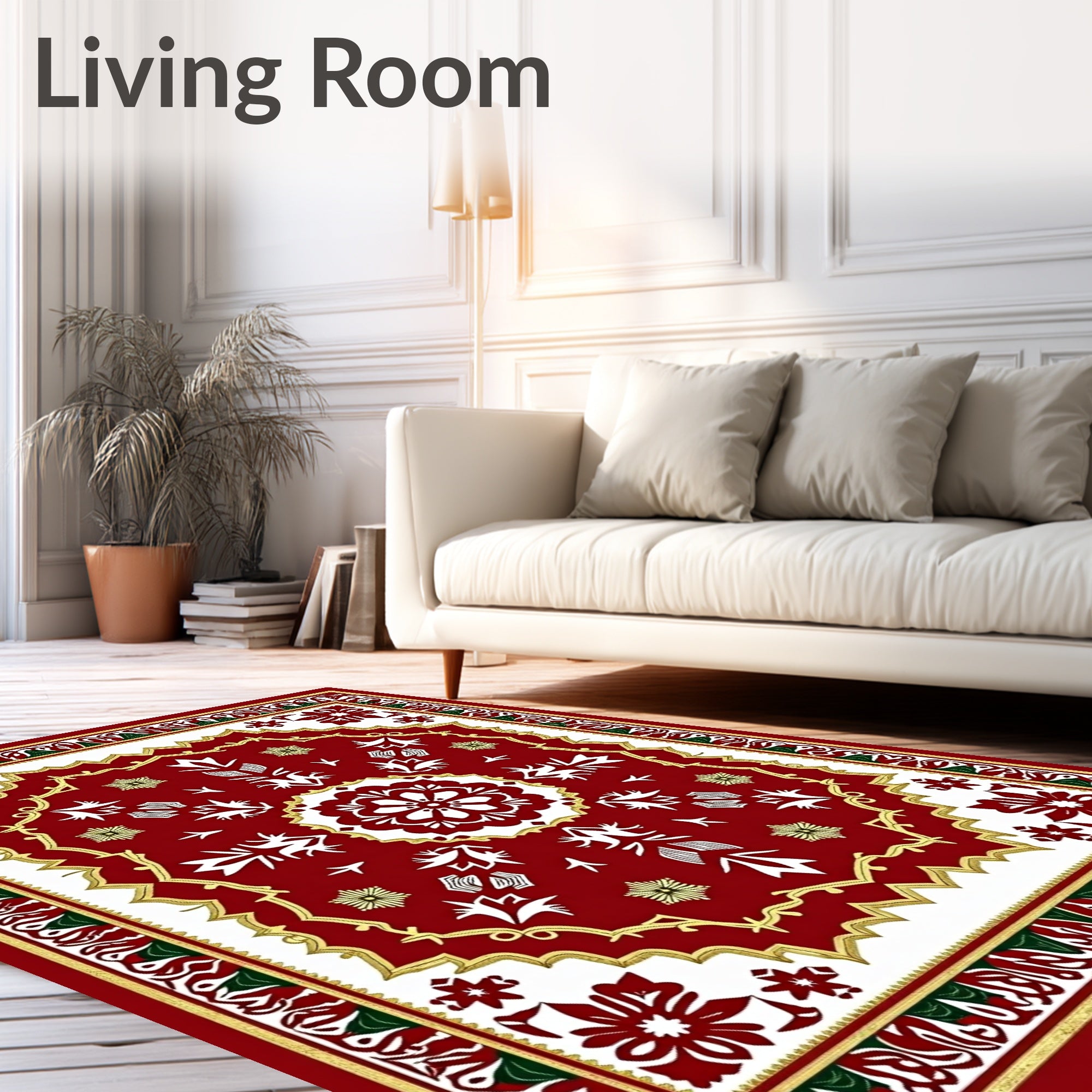 Flatwoven High Traffic Area Rug, Classic Interlocking Festive Snow Medallion with Vintage Borders, Non Slip, Stain Resistant, Washable Area Rugs for Living Room, Bedroom (Red) Overview: