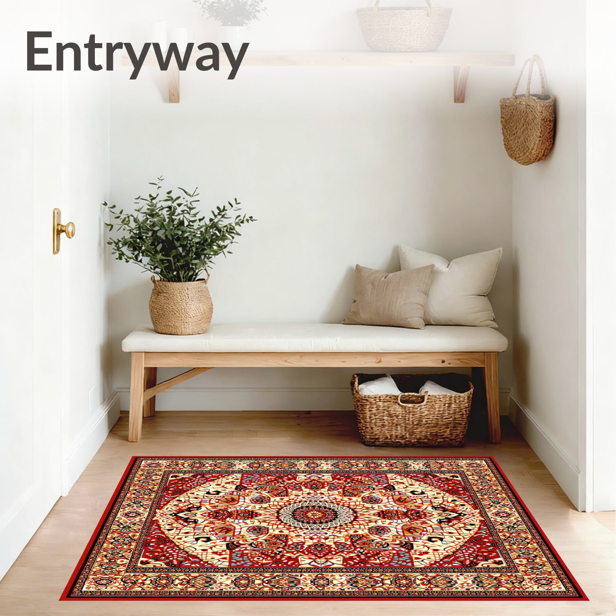 Ultra Soft Area Rug, Non Slip, Stain Resistant, Washable Area Rugs for Living Room, Bedroom, Classic Intricate(Red) Overview:
