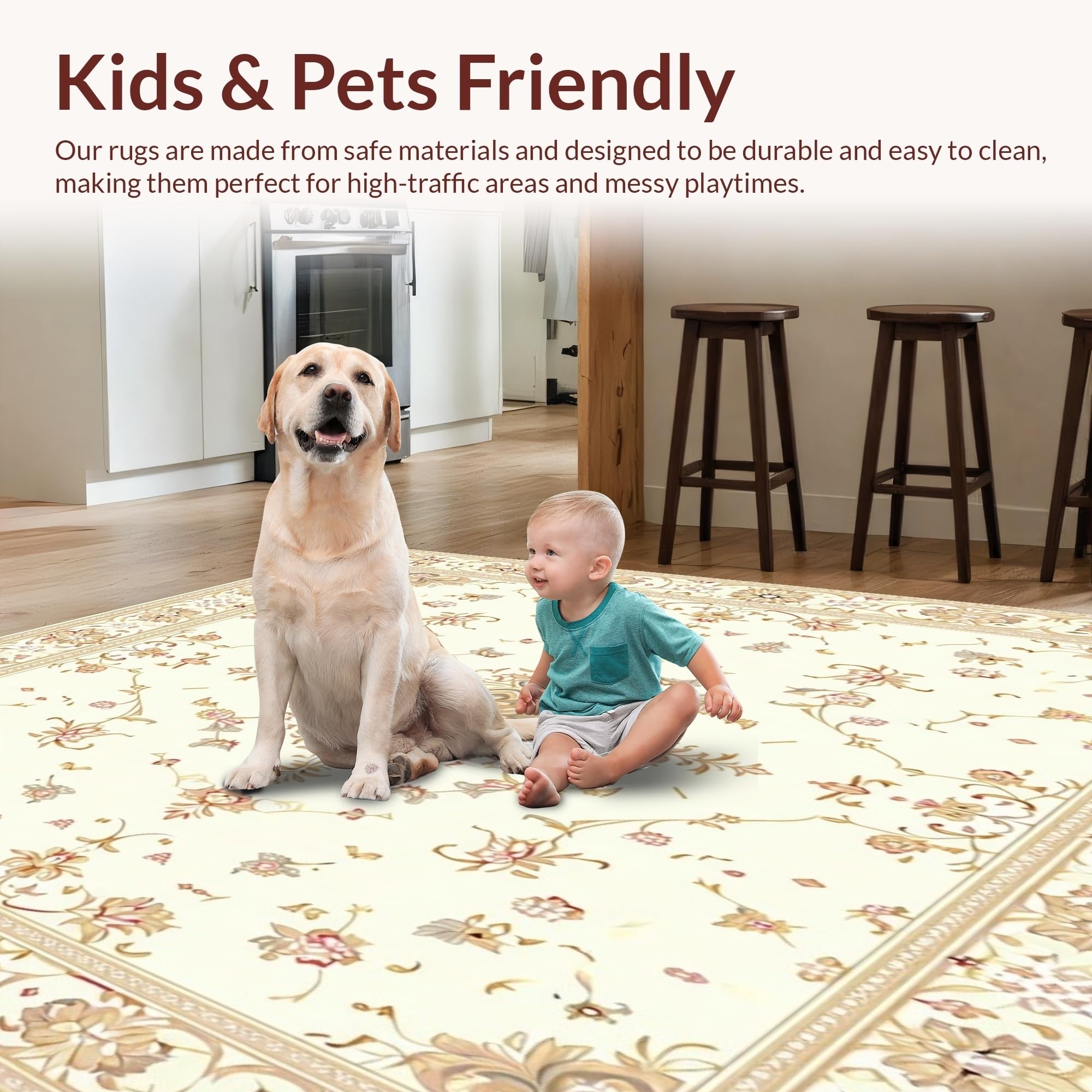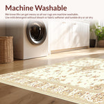 Ultra Soft Area Rug, Non Slip, Stain Resistant, Washable Area Rugs for Living Room, Bedroom, Classic Ivory Beige Medallion with Decorative Scroll and Floral(Beige) Overview: