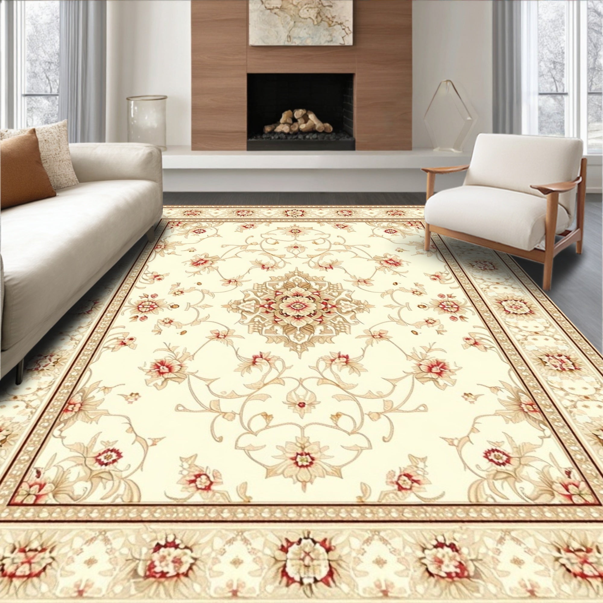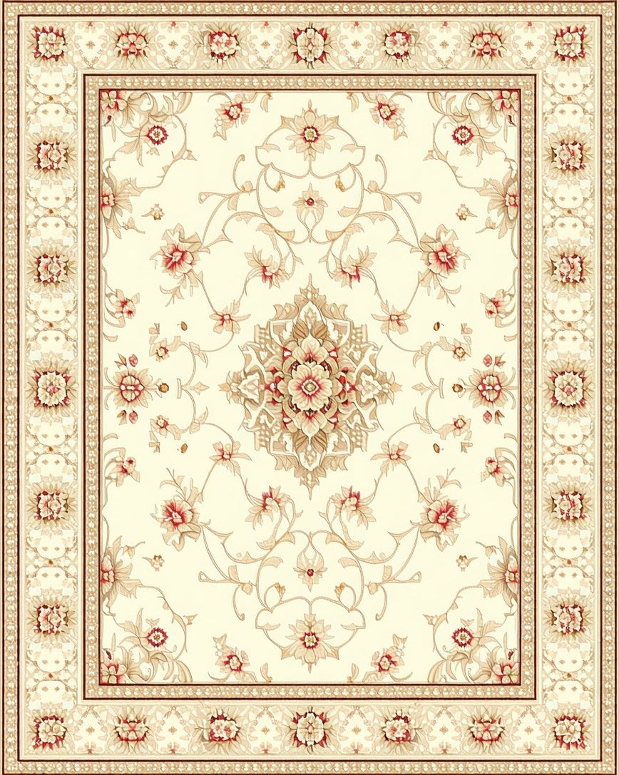 Ultra Soft Area Rug, Non Slip, Stain Resistant, Washable Area Rugs for Living Room, Bedroom, Classic Krystin Motif With Beige And Ivory Accents(Beige) Overview: