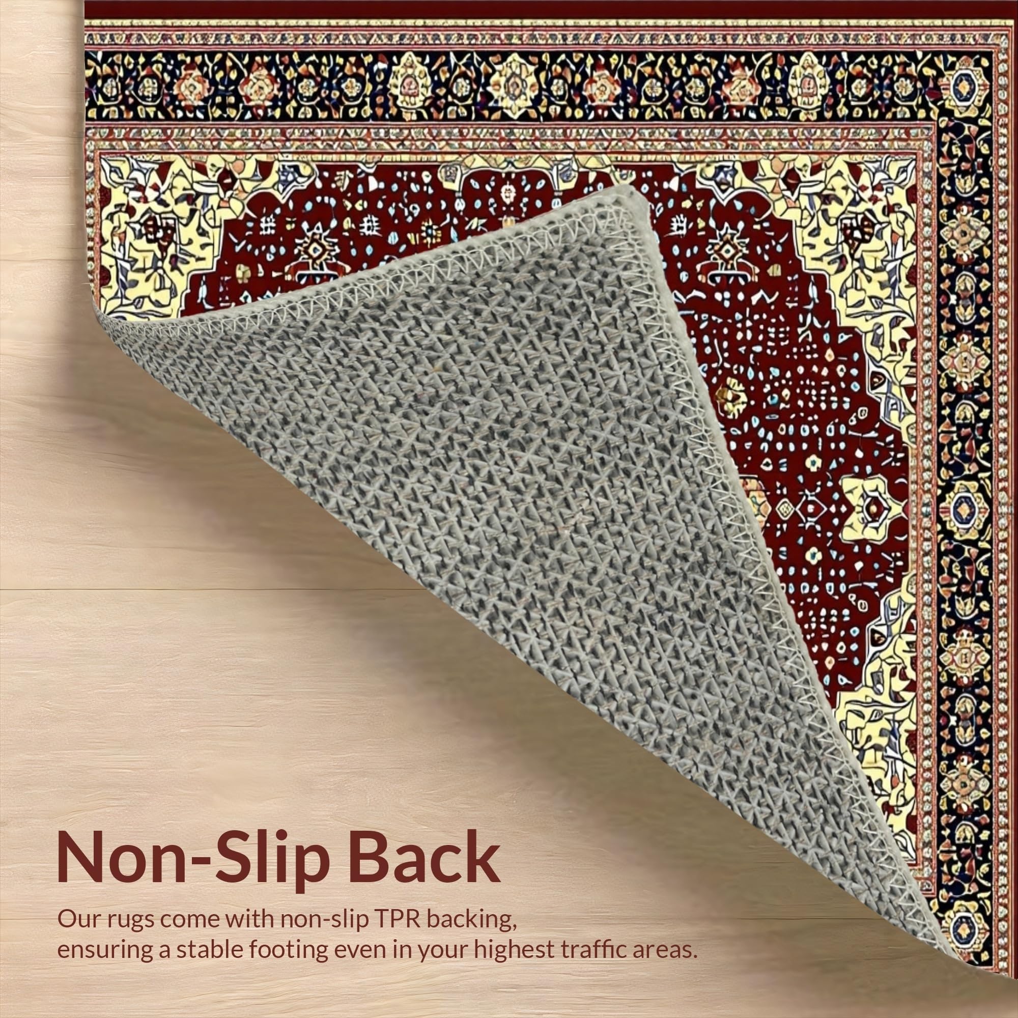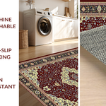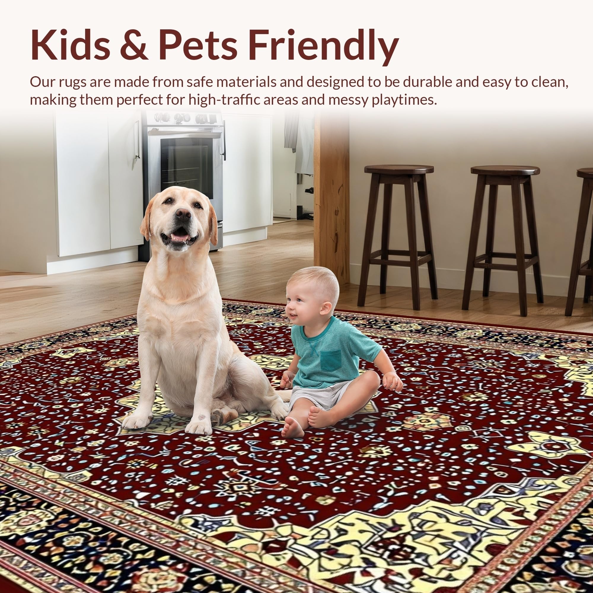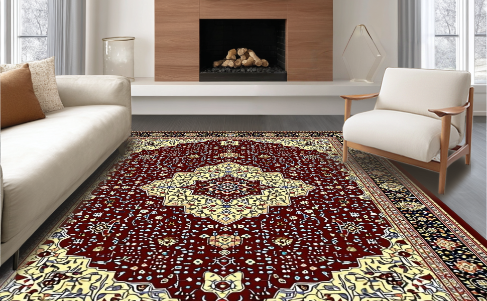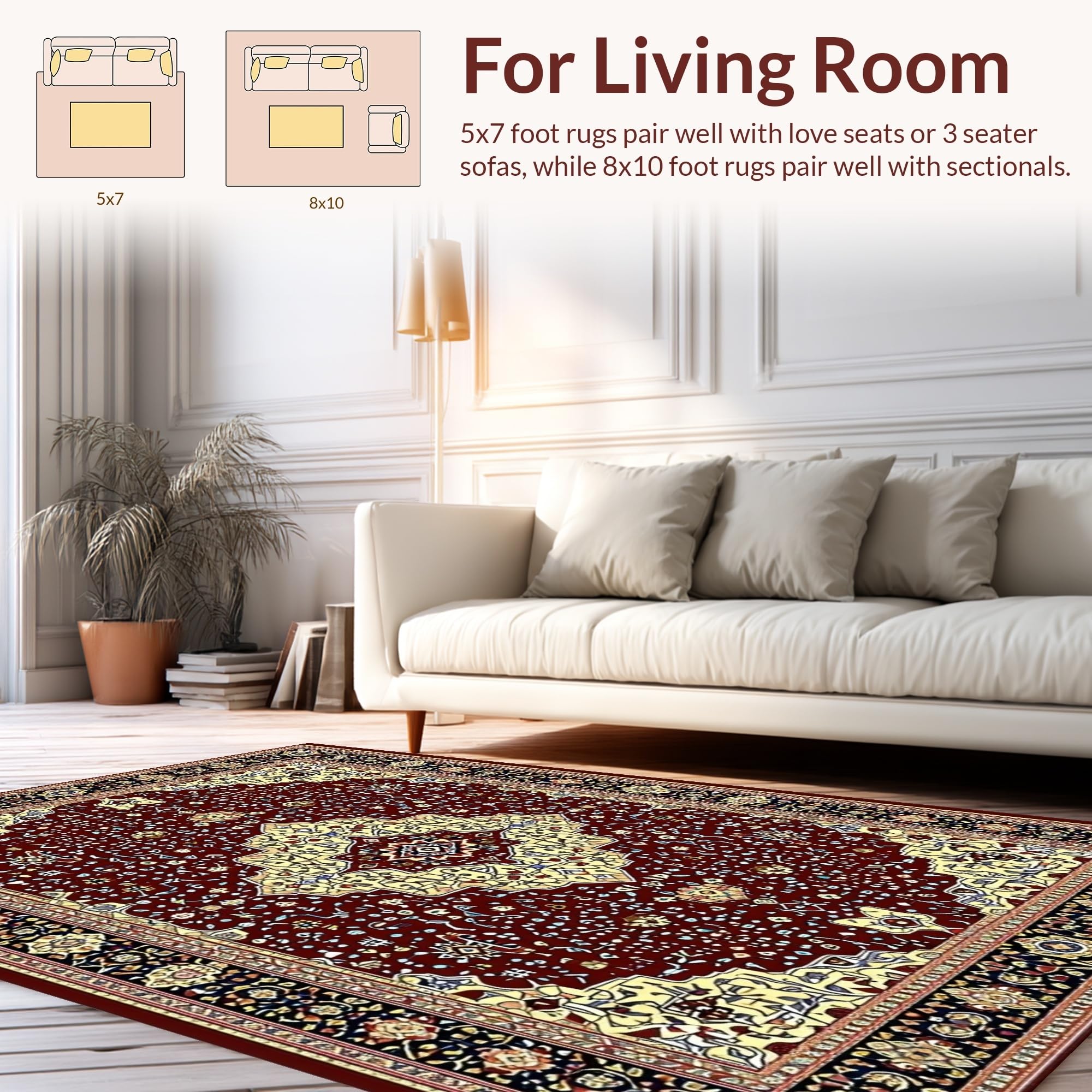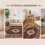 Ultra Soft Area Rug, Non Slip, Stain Resistant, Washable Area Rugs for Living Room, Bedroom, Classic Maroon Medallion Flourish(Red) Overview: