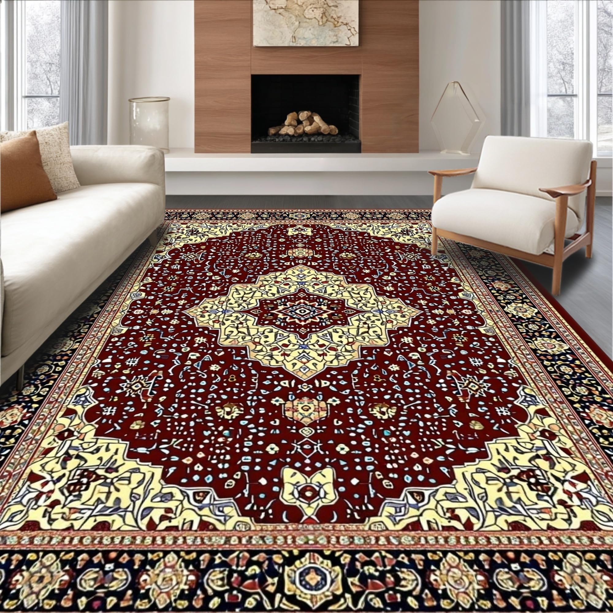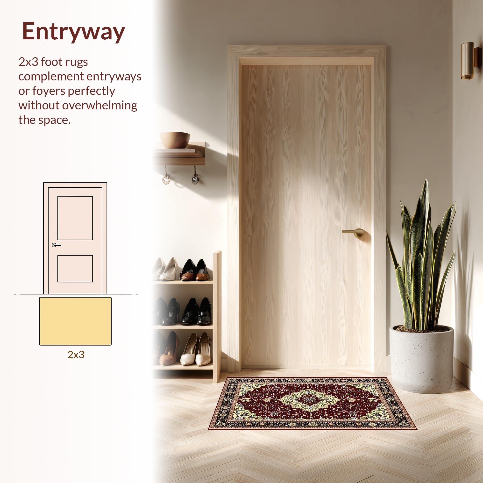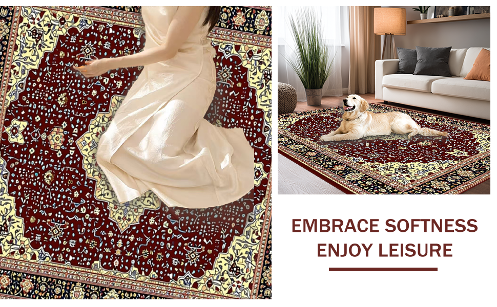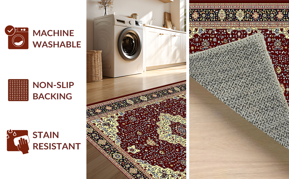 Ultra Soft Area Rug, Non Slip, Stain Resistant, Washable Area Rugs for Living Room, Bedroom, Classic Maroon Medallion Flourish(Red) Overview: