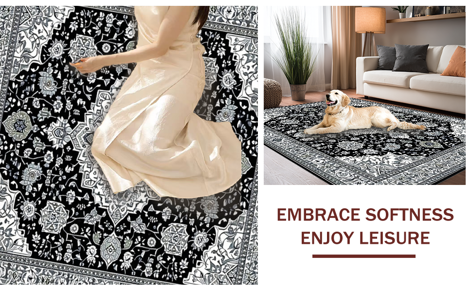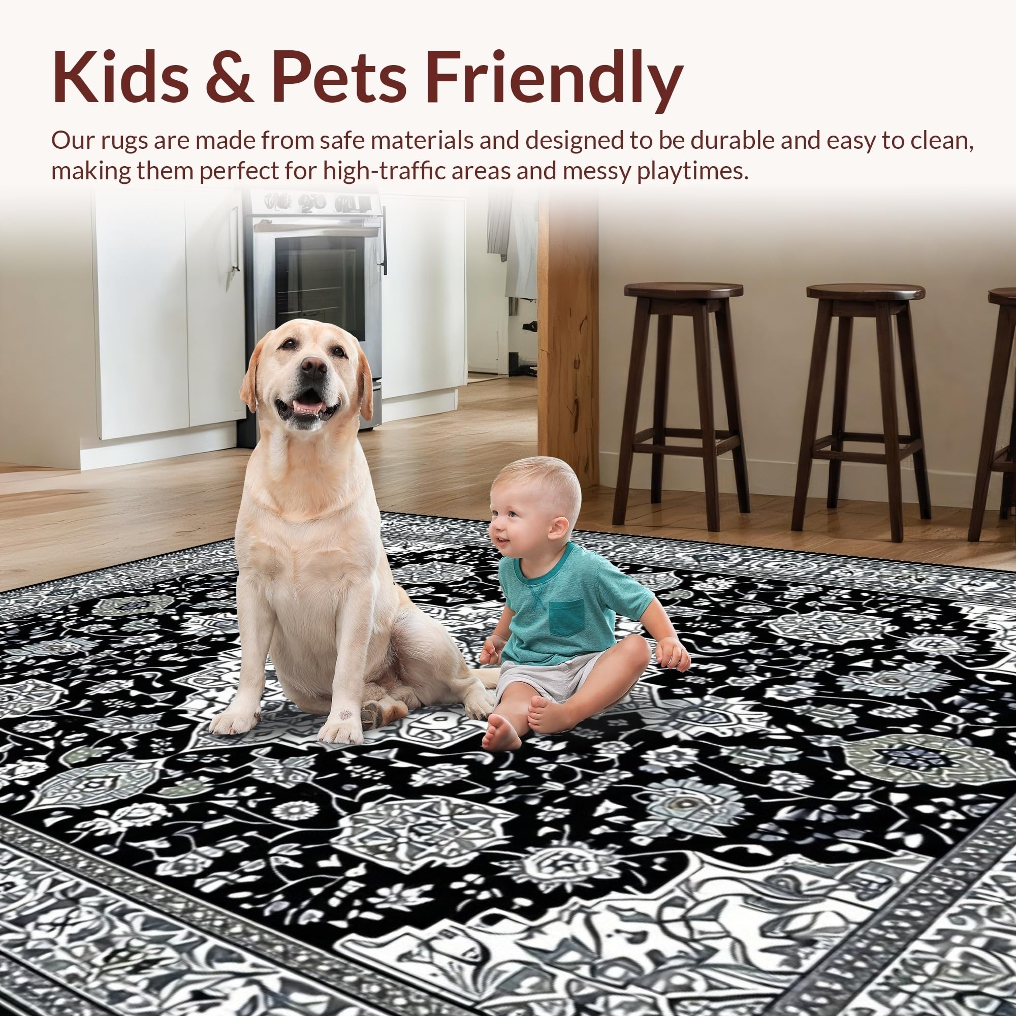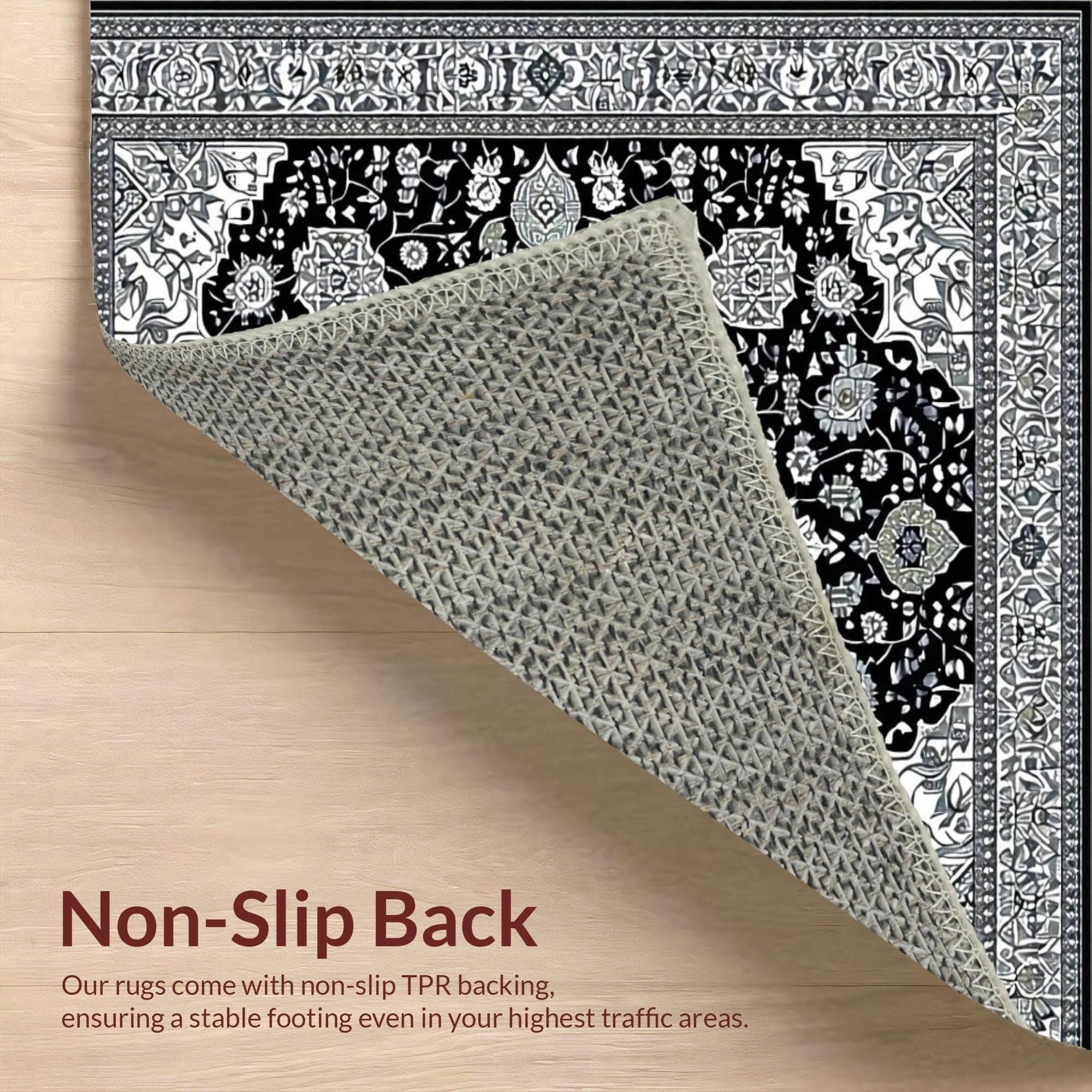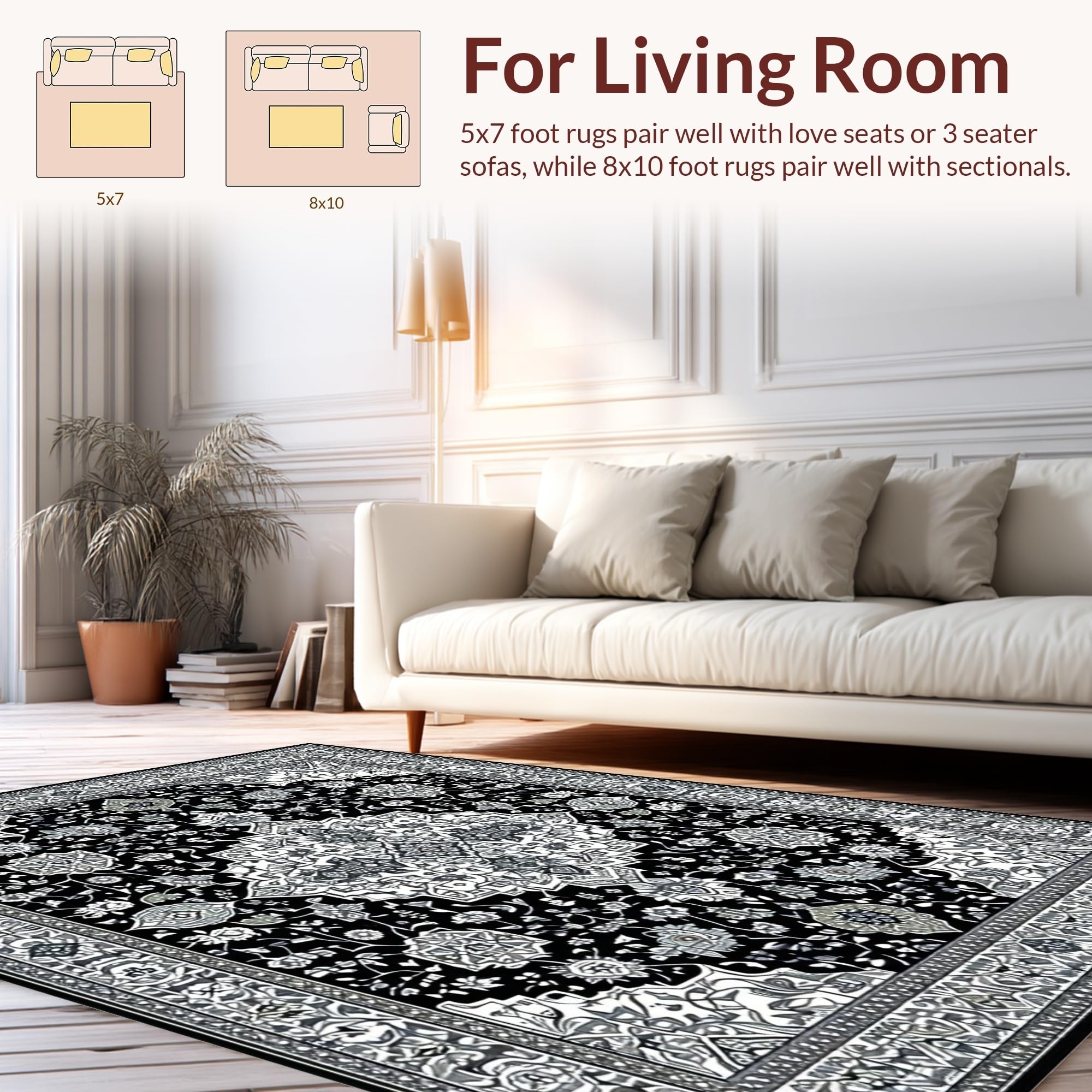 Ultra Soft Area Rug, Non Slip, Stain Resistant, Washable Area Rugs for Living Room, Bedroom, Classic Monochrome Medallion Style(Black) Overview: