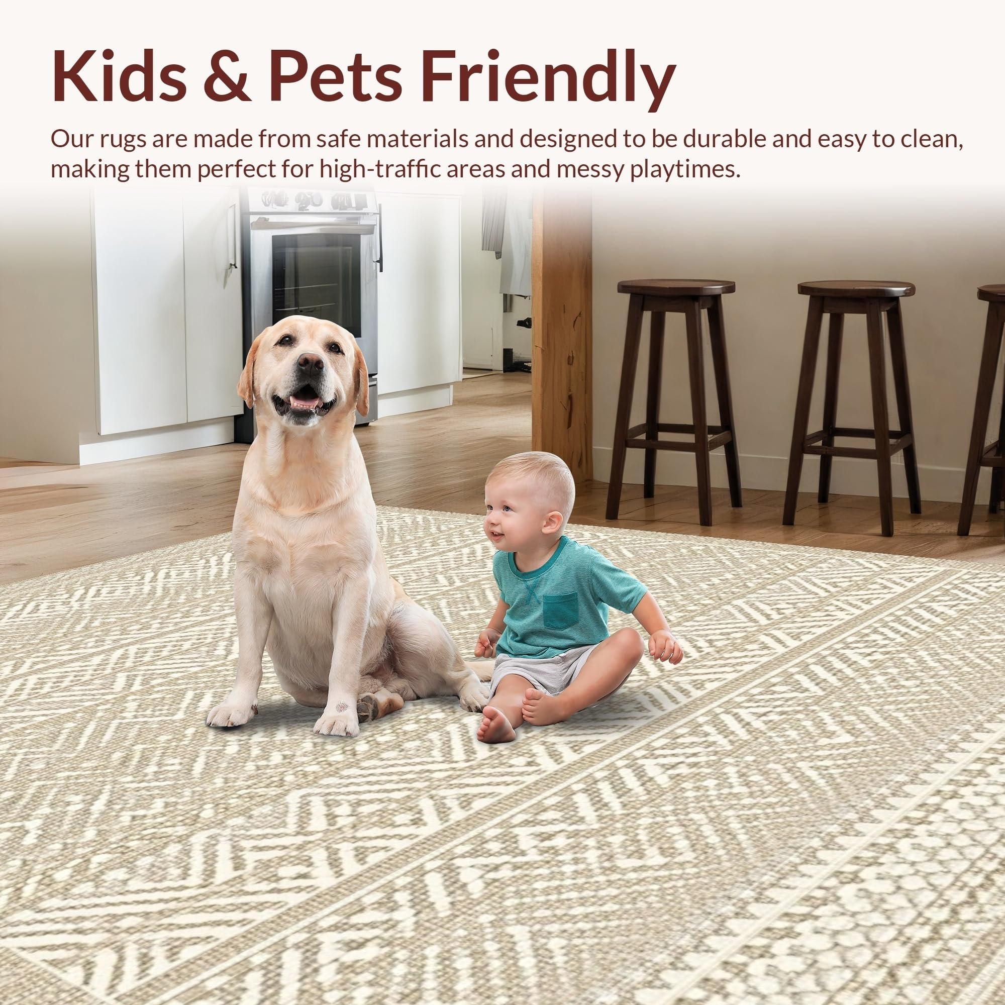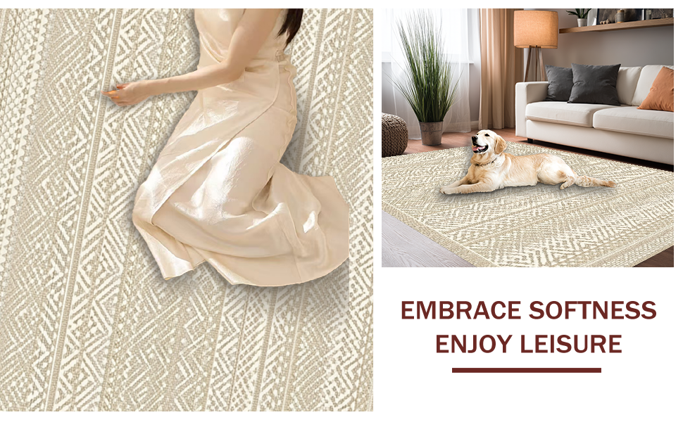 Ultra Soft Area Rug, Non Slip, Stain Resistant, Washable Area Rugs for Living Room, Bedroom, Classic Natural Toned Abstract Shape(Beige) Overview: