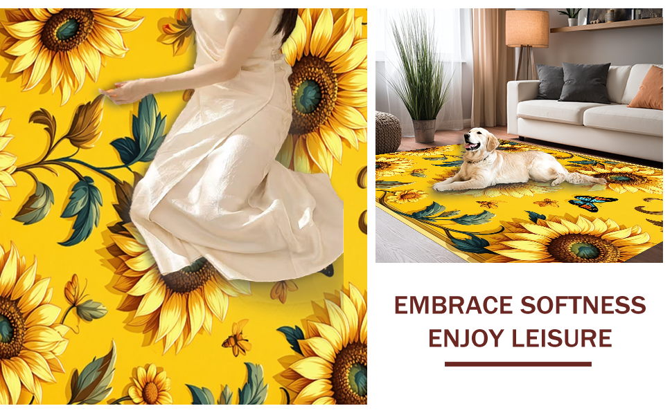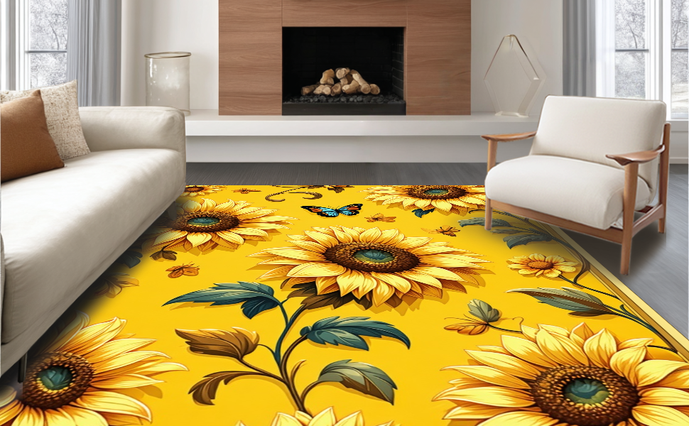 Ultra Soft Area Rug, Non Slip, Stain Resistant, Washable Area Rugs for Living Room, Bedroom, Classic Nature-Inspired Tapestry(Yellow) Overview: