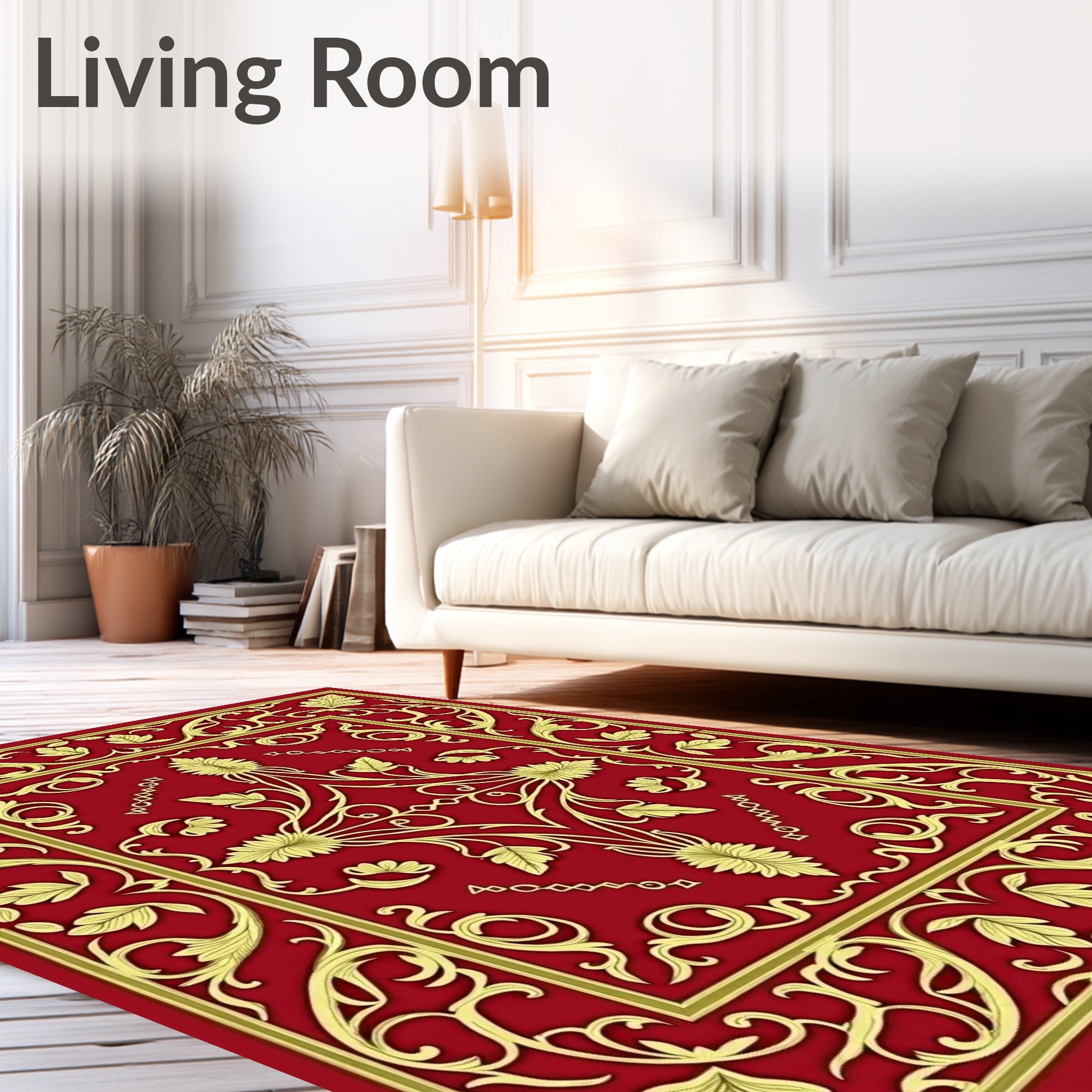 Ultra Soft Area Rug, Non Slip, Stain Resistant, Washable Area Rugs for Living Room, Bedroom, Classic Nature Scroll Work Design Machine Cleanable Accent(Red) Overview: