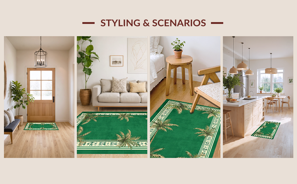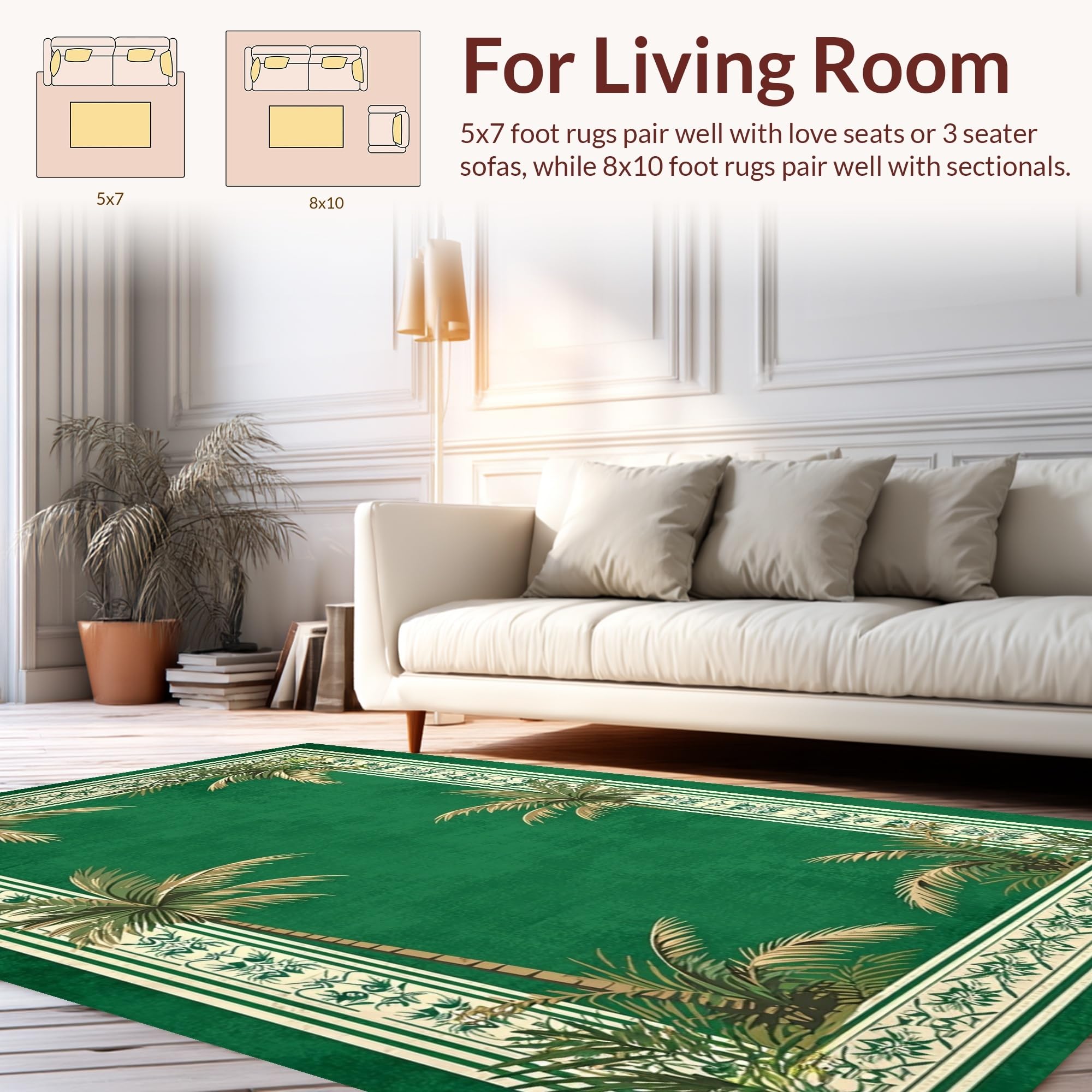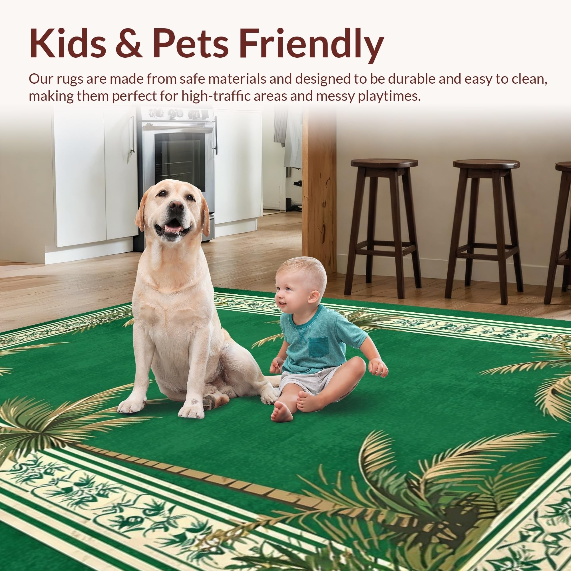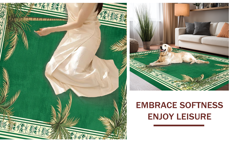 Ultra Soft Area Rug, Non Slip, Stain Resistant, Washable Area Rugs for Living Room, Bedroom, Classic Nature-Themed Decor(Green) Overview: