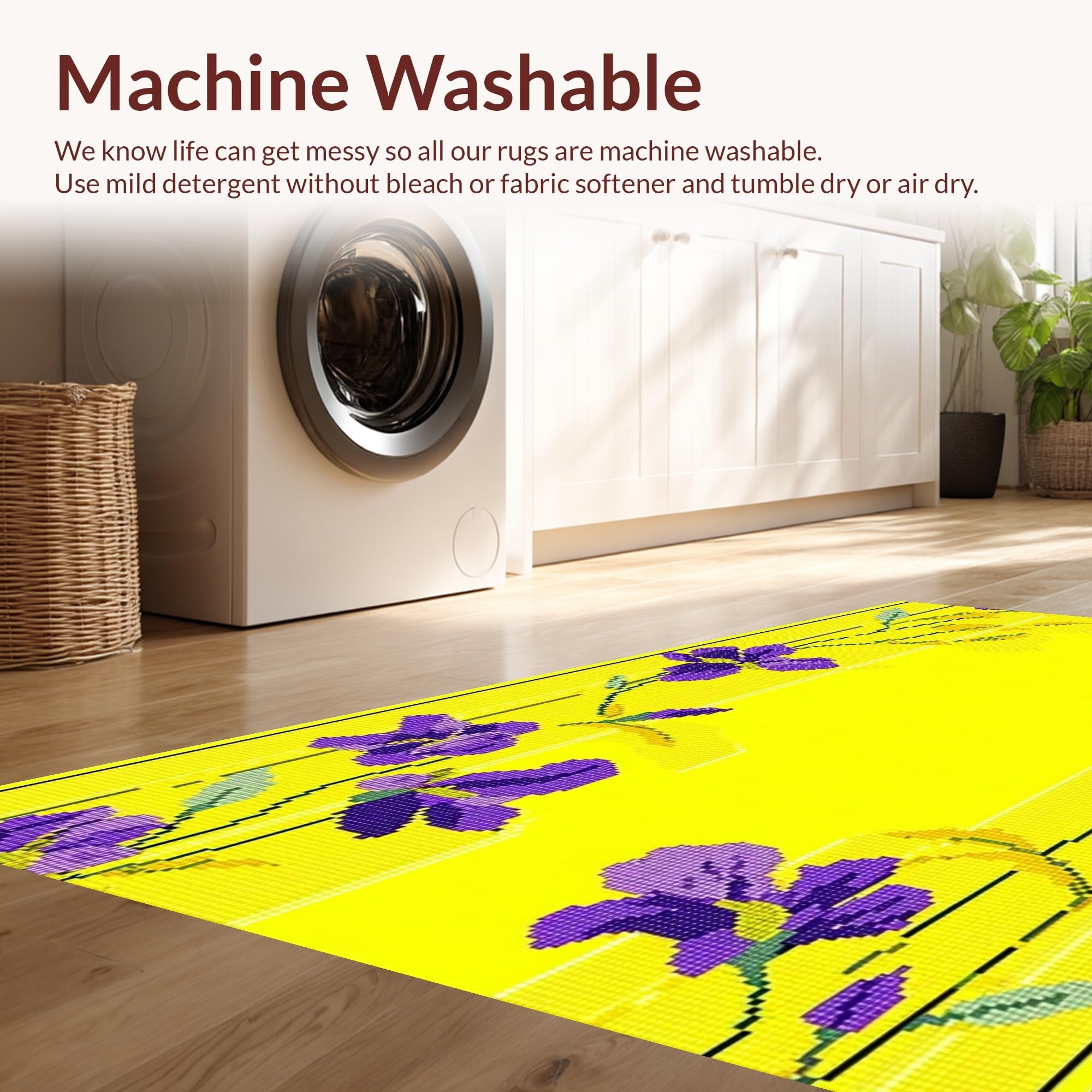 - Machine Washable: Our rugs can be easily thrown in the wash machine.