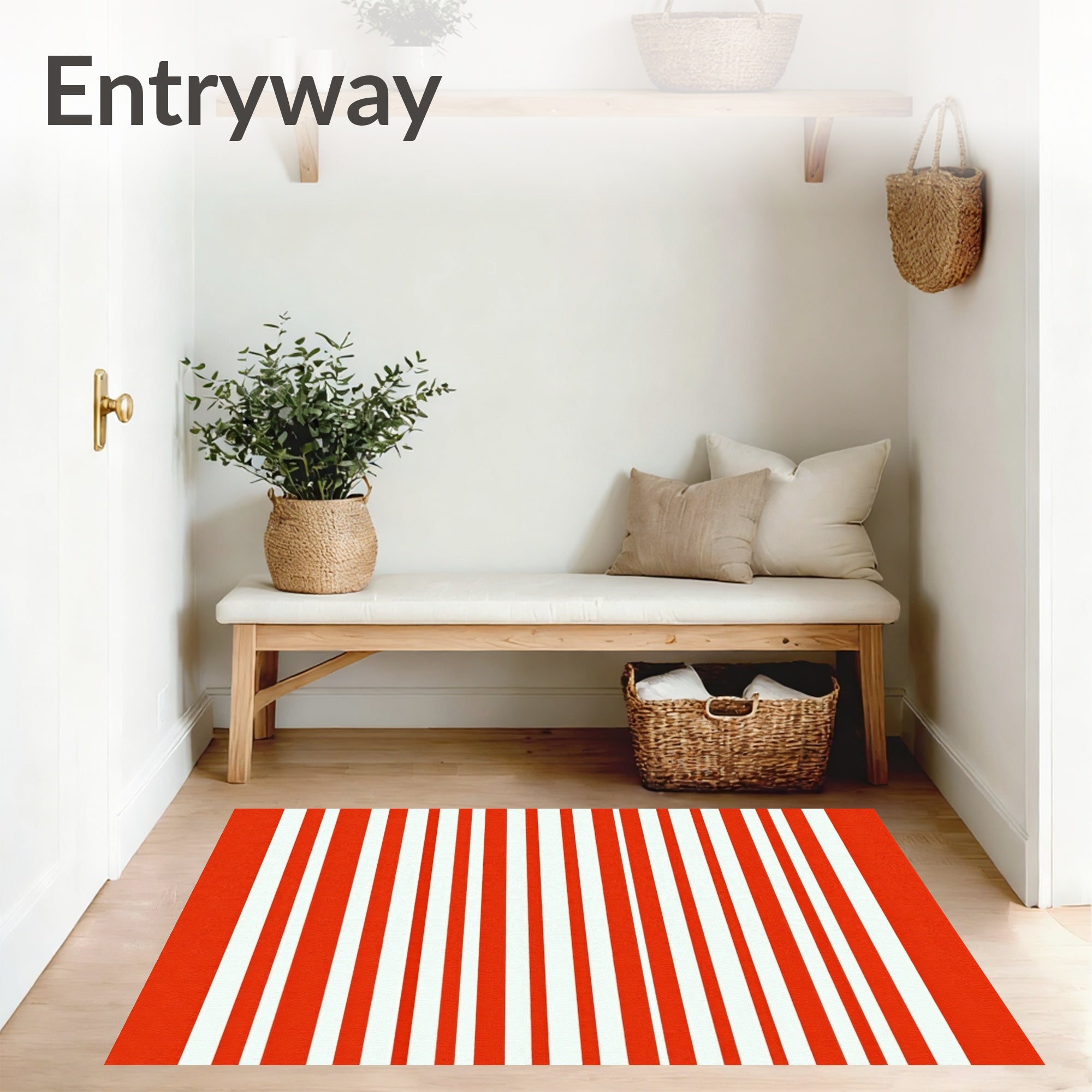 Classic Nautical Bands Handwoven Decorative Entrance Covering(Red)