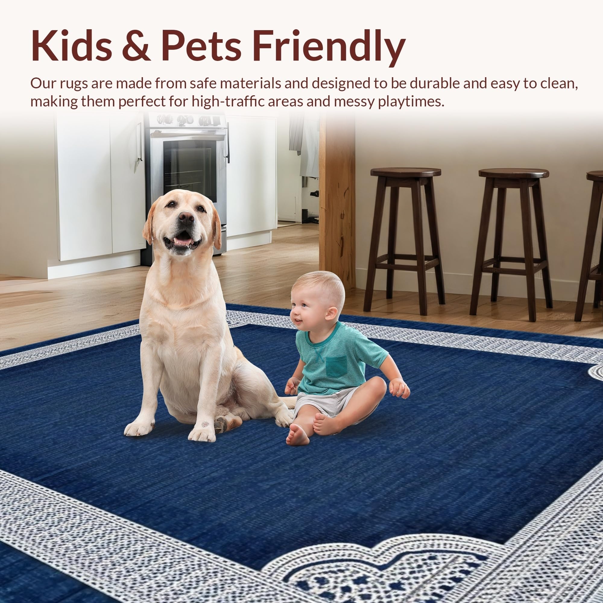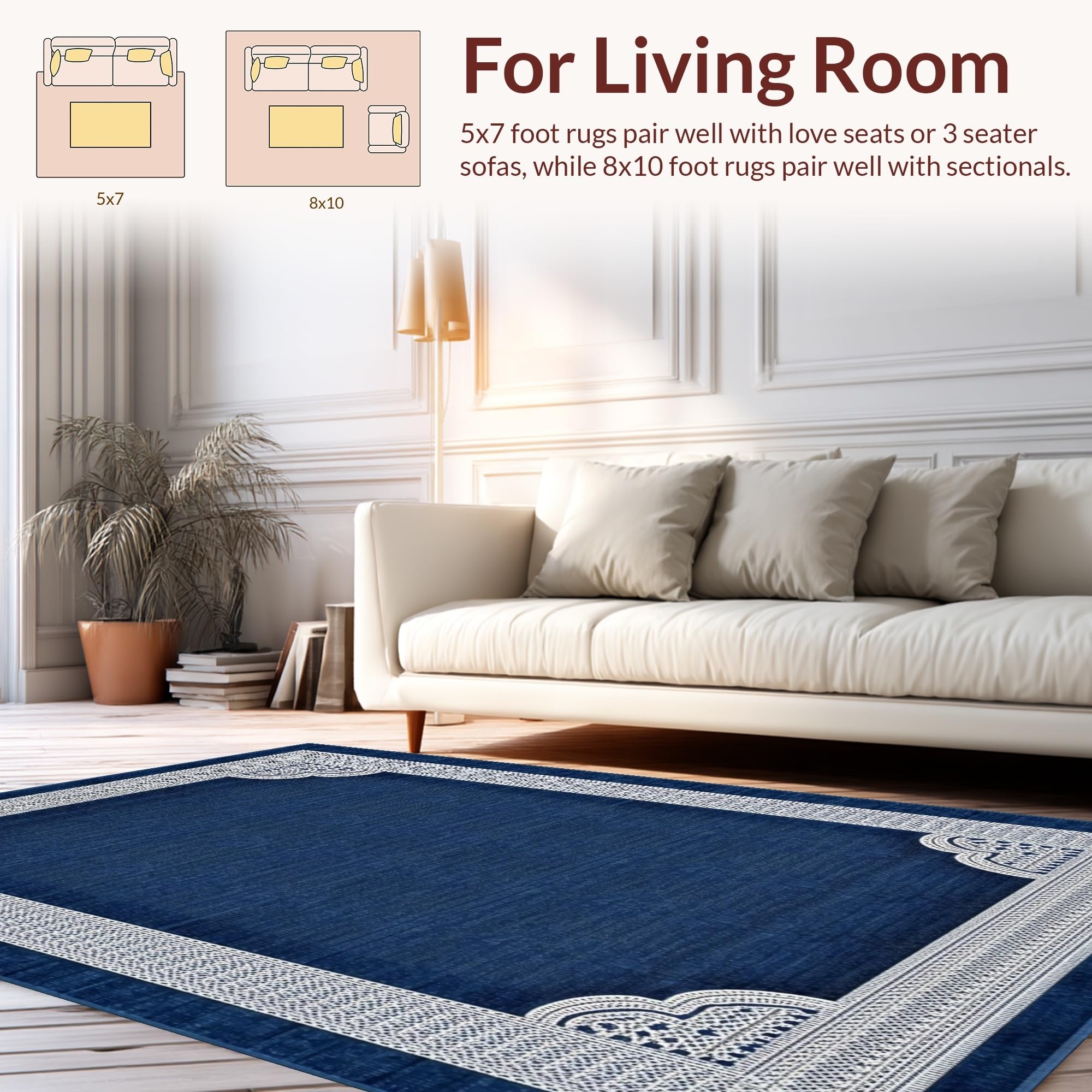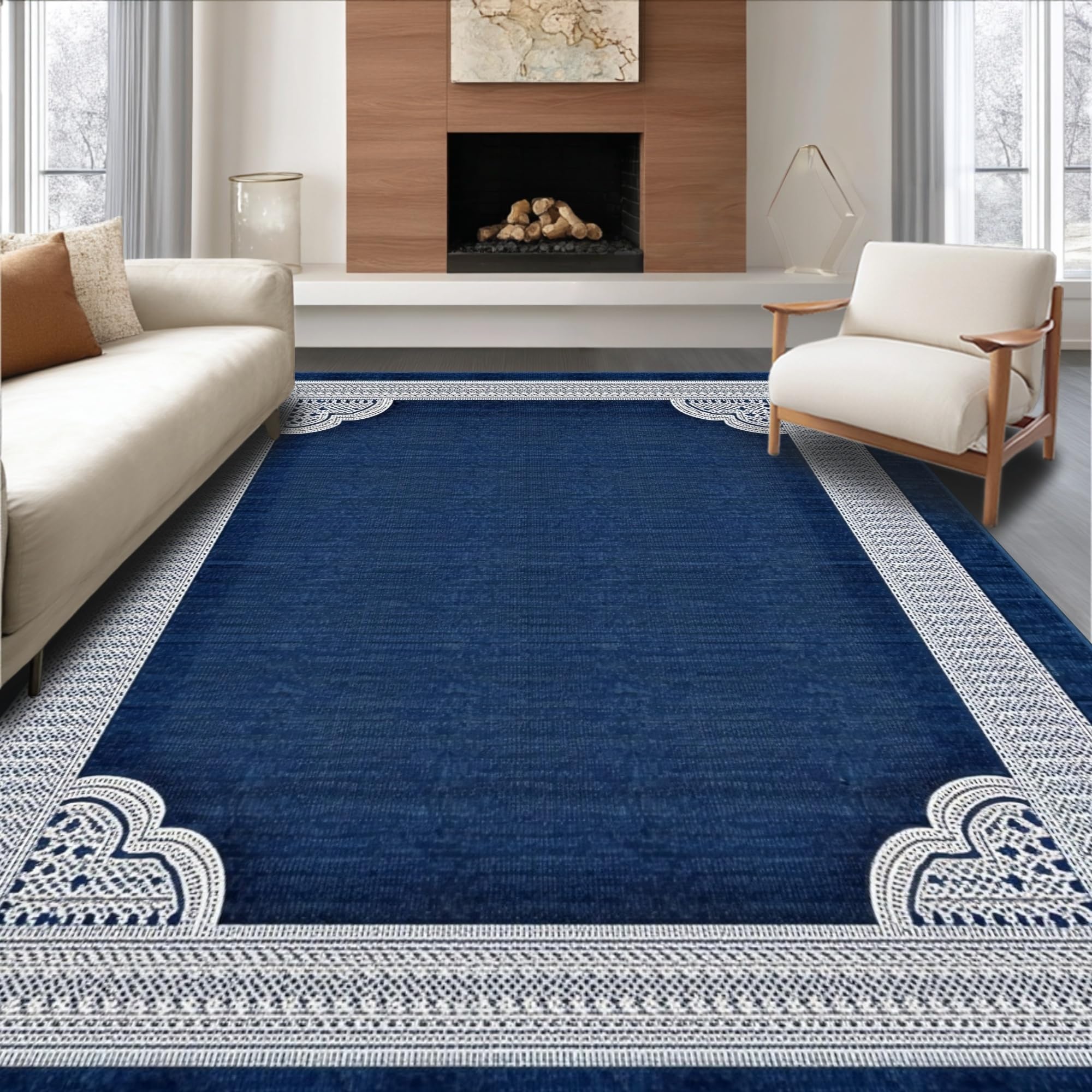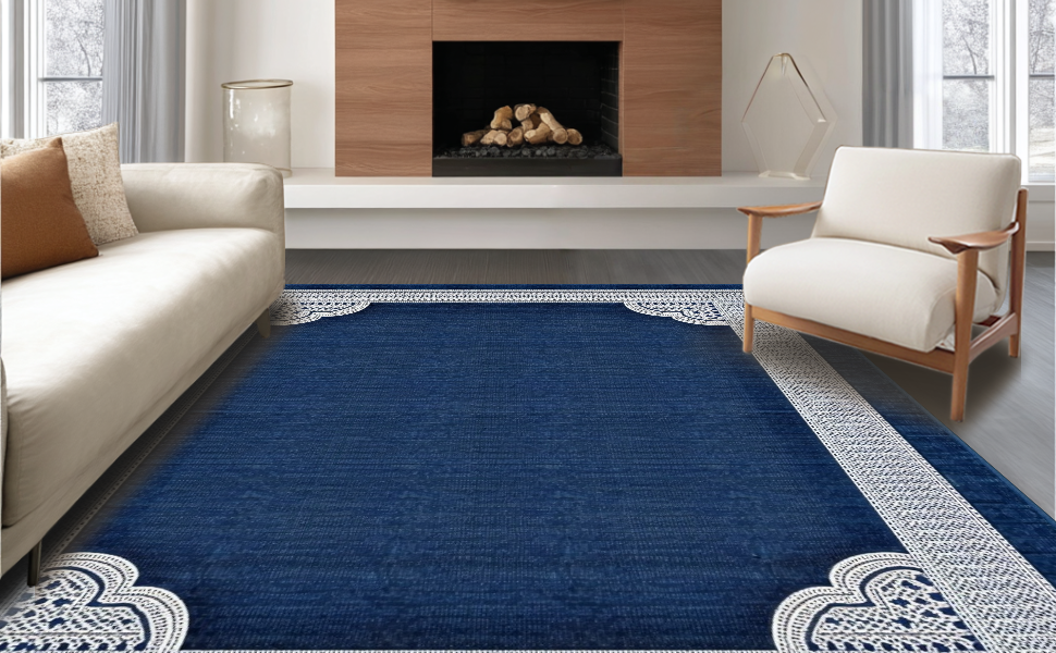 Ultra Soft Area Rug, Non Slip, Stain Resistant, Washable Area Rugs for Living Room, Bedroom, Classic Nautical Inspired Style(Blue) Overview: