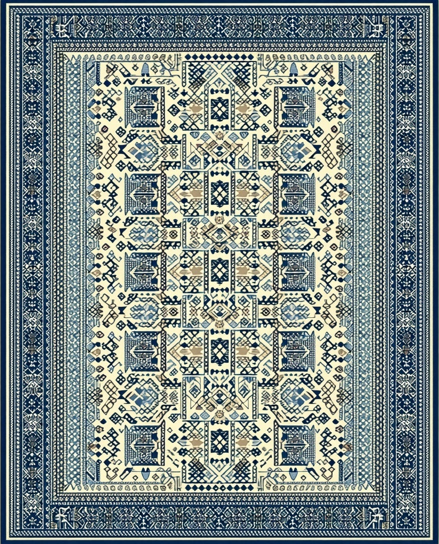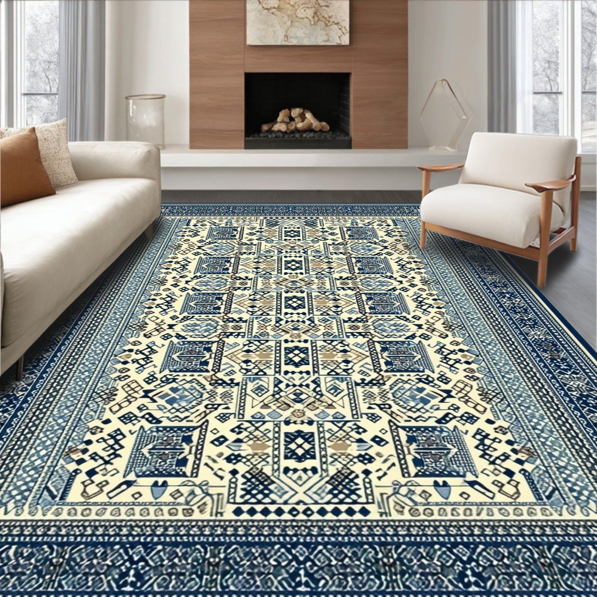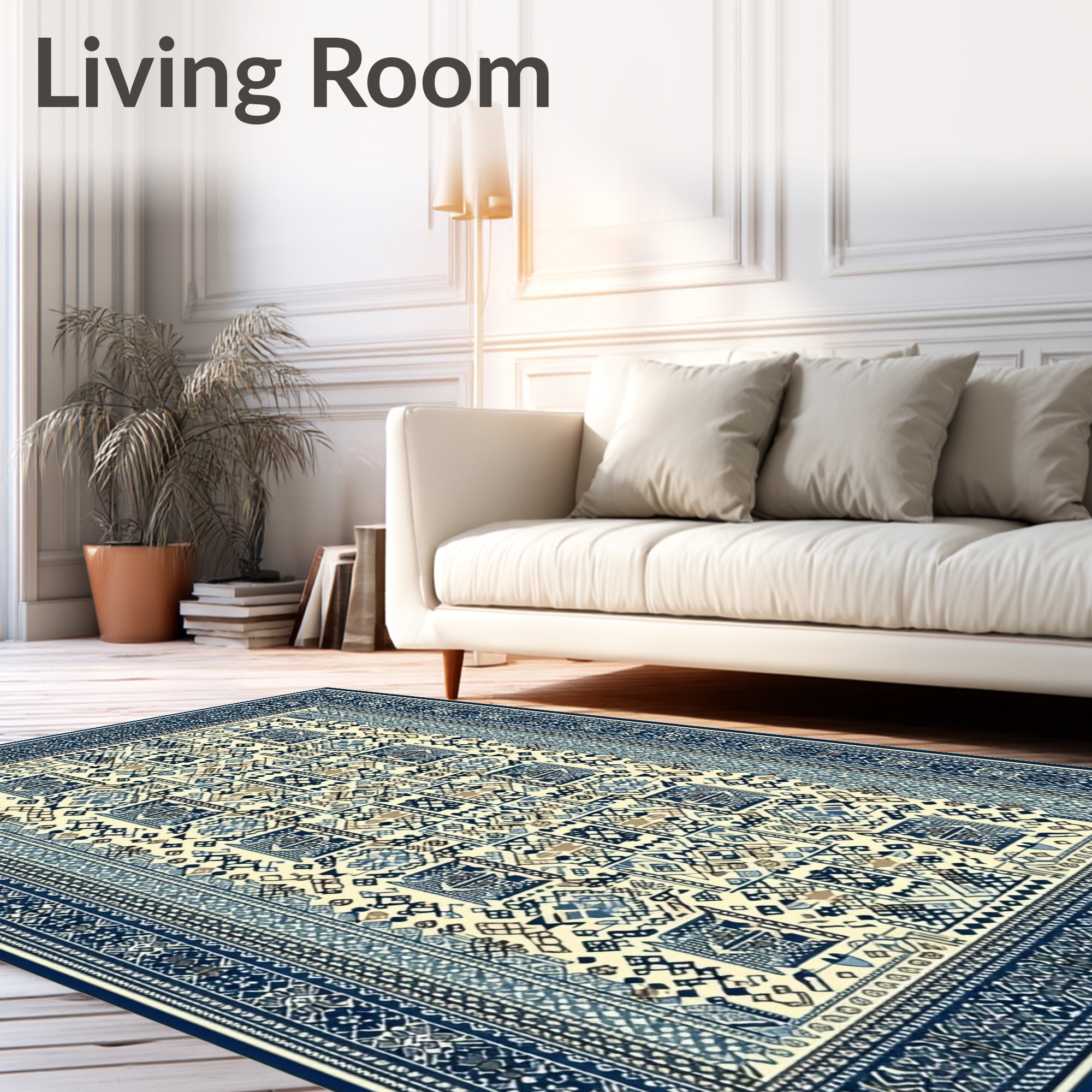 Ultra Soft Area Rug, Non Slip, Stain Resistant, Washable Area Rugs for Living Room, Bedroom, Classic Navy Blue and Beige(Blue) Overview: