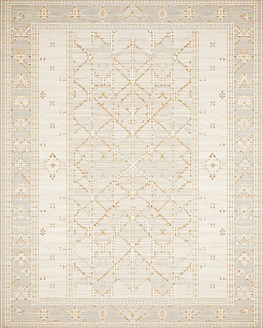 Ultra Soft Area Rug, Non Slip, Stain Resistant, Washable Area Rugs for Living Room, Bedroom, Classic Neutral Trellis with Layered Diamond Geometry and Smooth Finish(Beige) Overview: