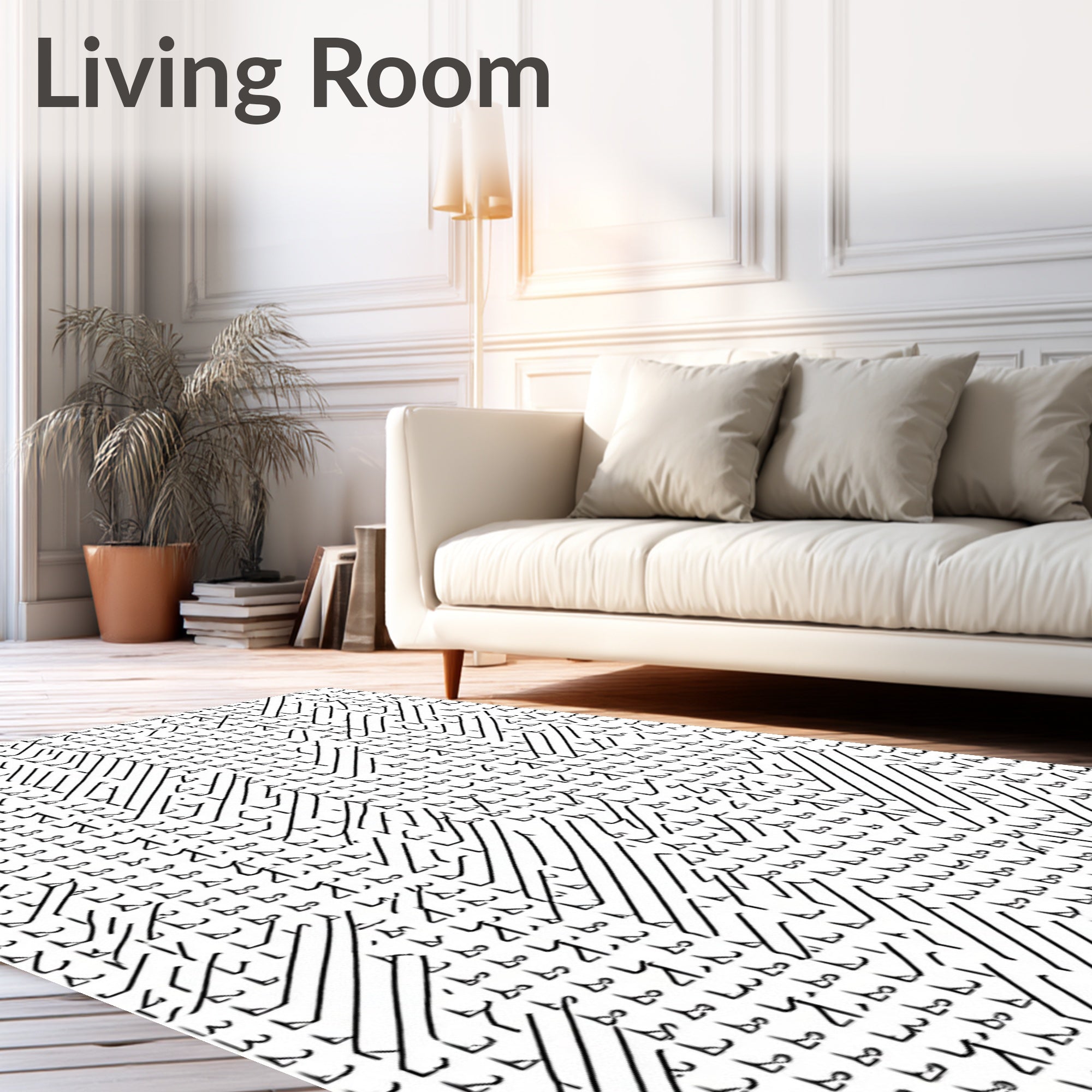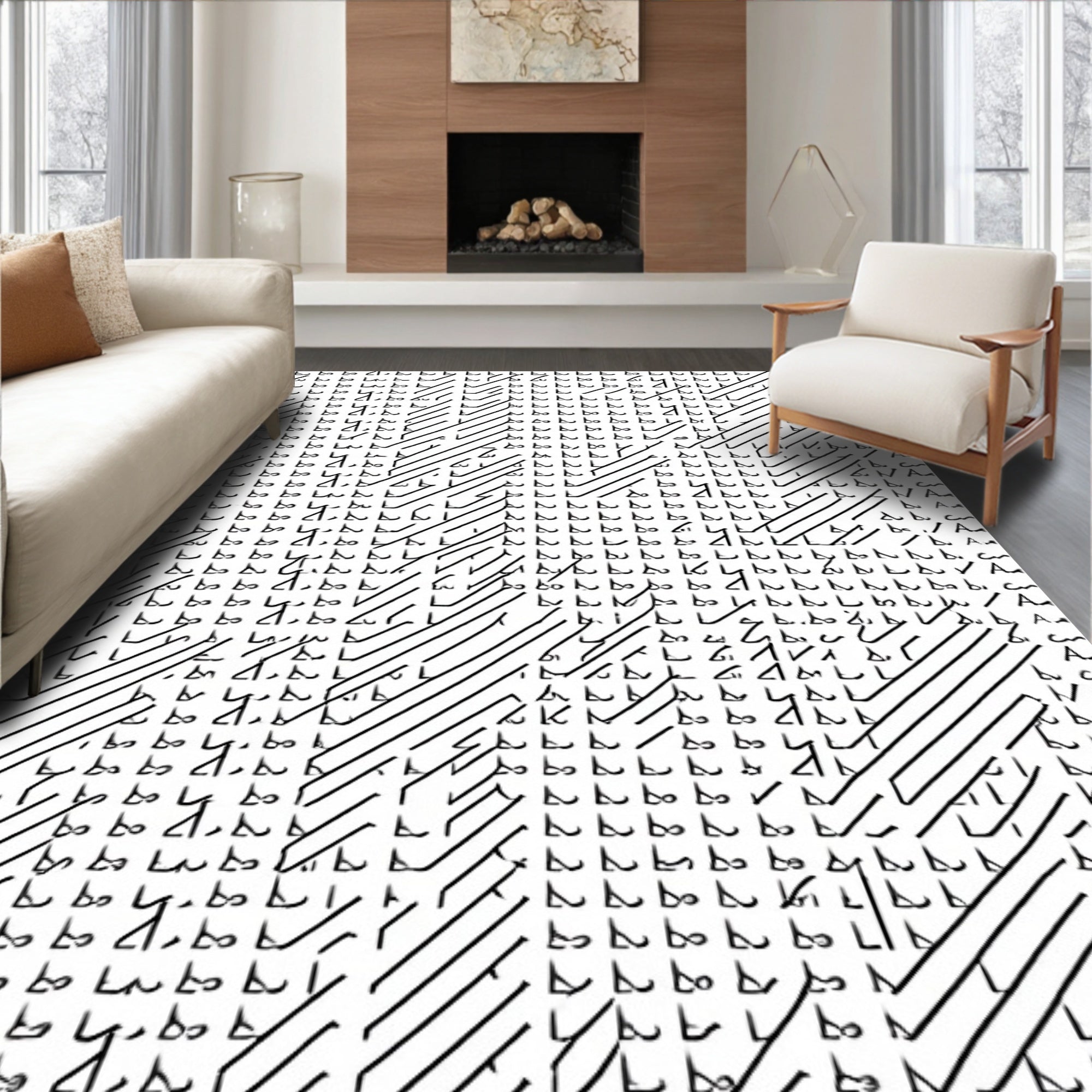 Ultra Soft Area Rug, Non Slip, Stain Resistant, Washable Area Rugs for Living Room, Bedroom, Classic Nordic Stripe Abstract Motif(Black) Overview: