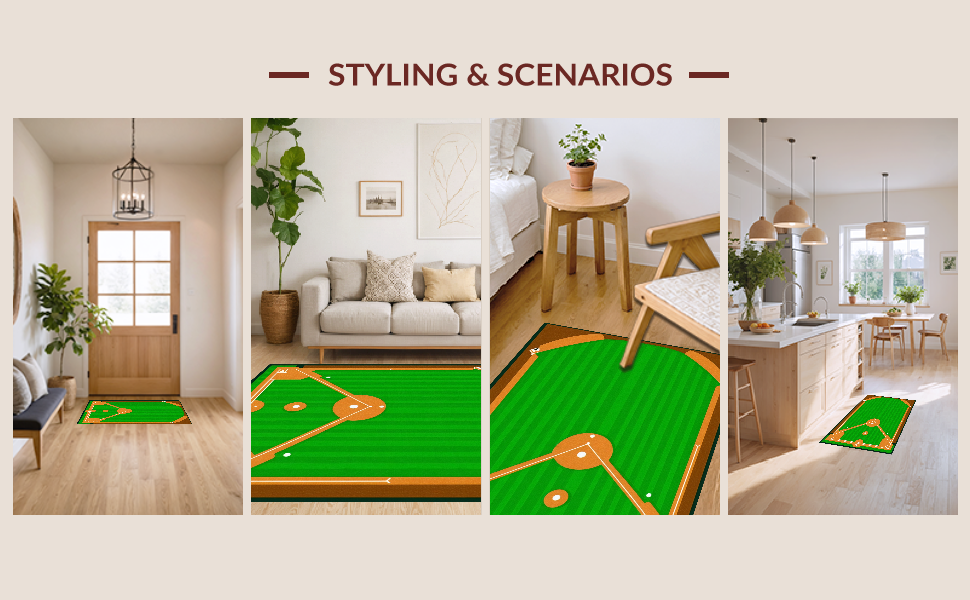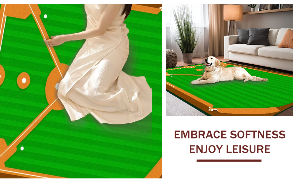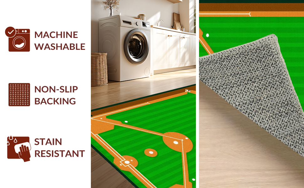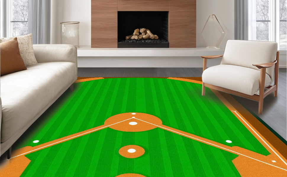 Ultra Soft Area Rug, Non Slip, Stain Resistant, Washable Area Rugs for Living Room, Bedroom, Classic Nostalgic Baseball Iconography(Green) Overview: