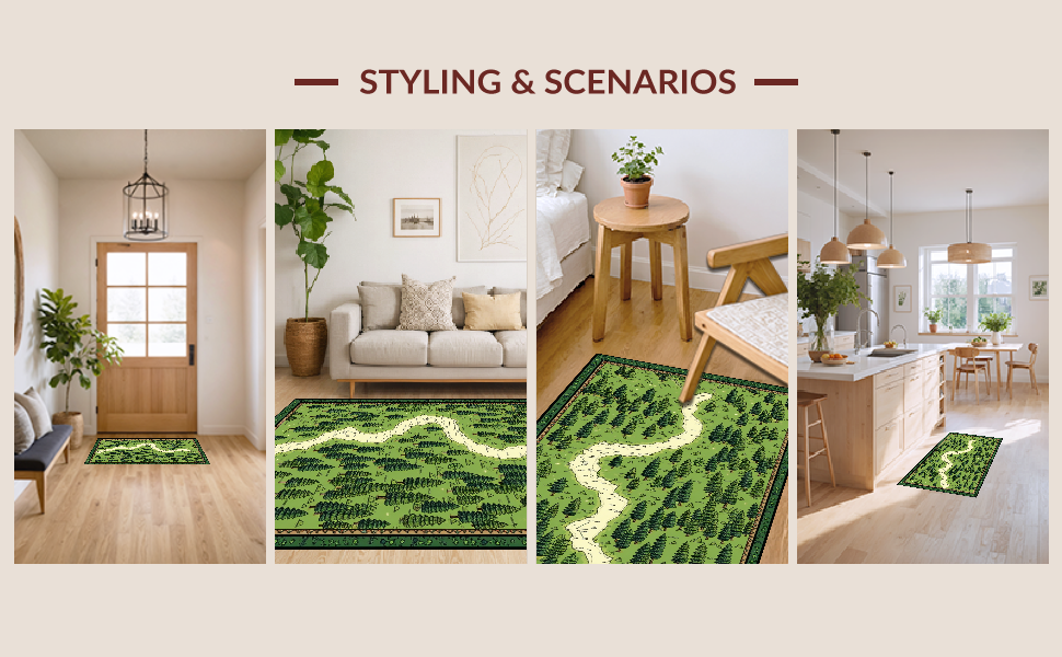 Ultra Soft Area Rug, Non Slip, Stain Resistant, Washable Area Rugs for Living Room, Bedroom, Classic Nostalgic Vintage Style(Green) Overview: