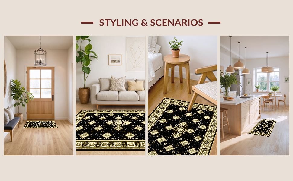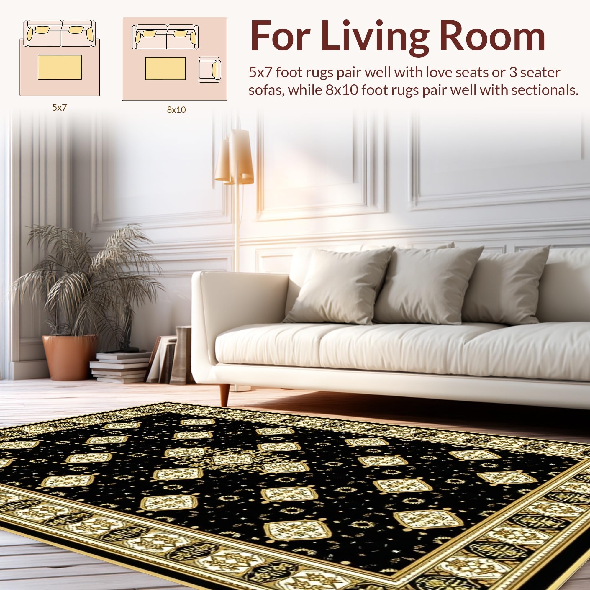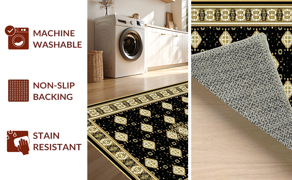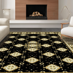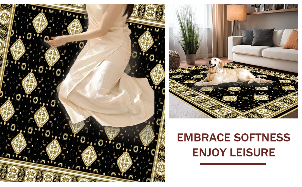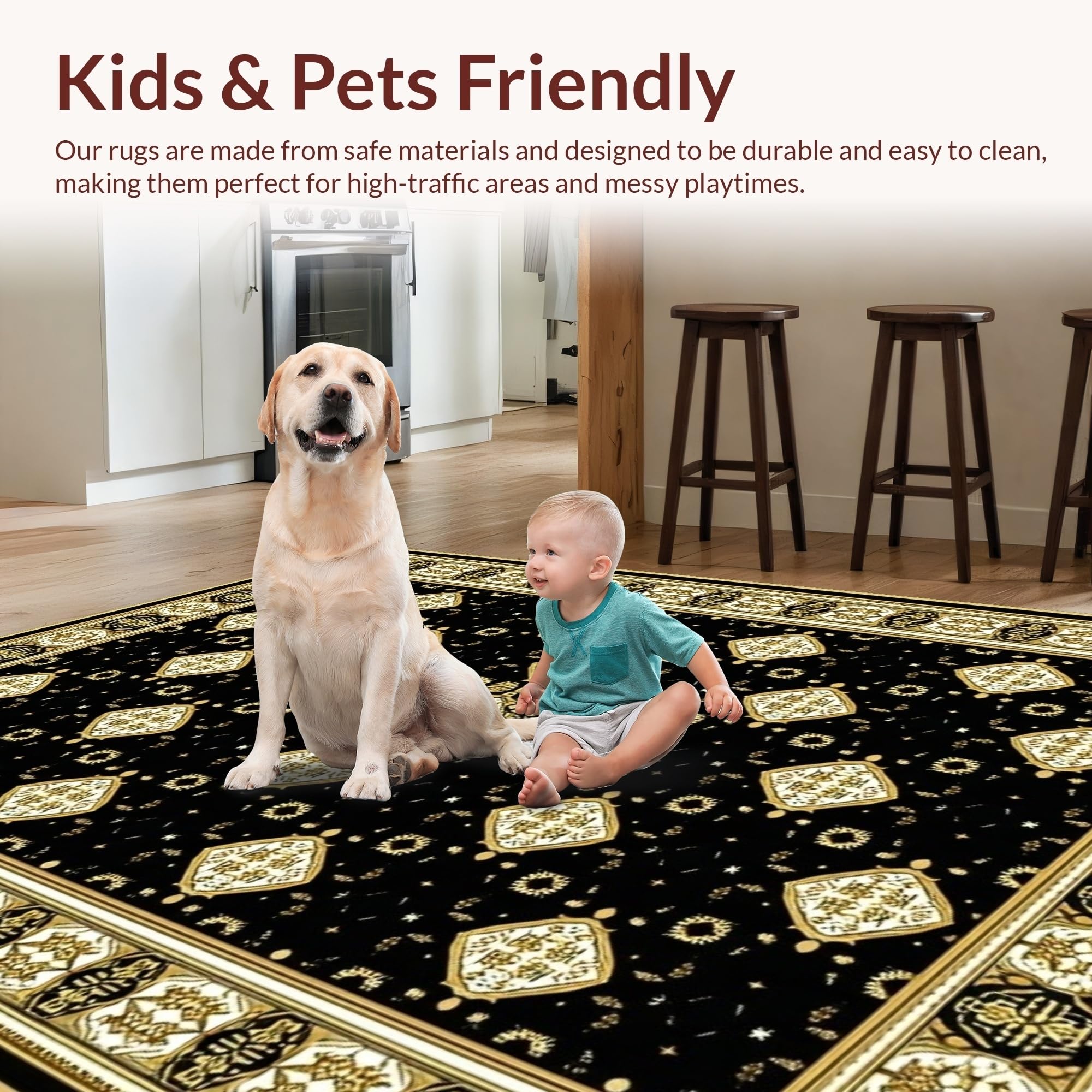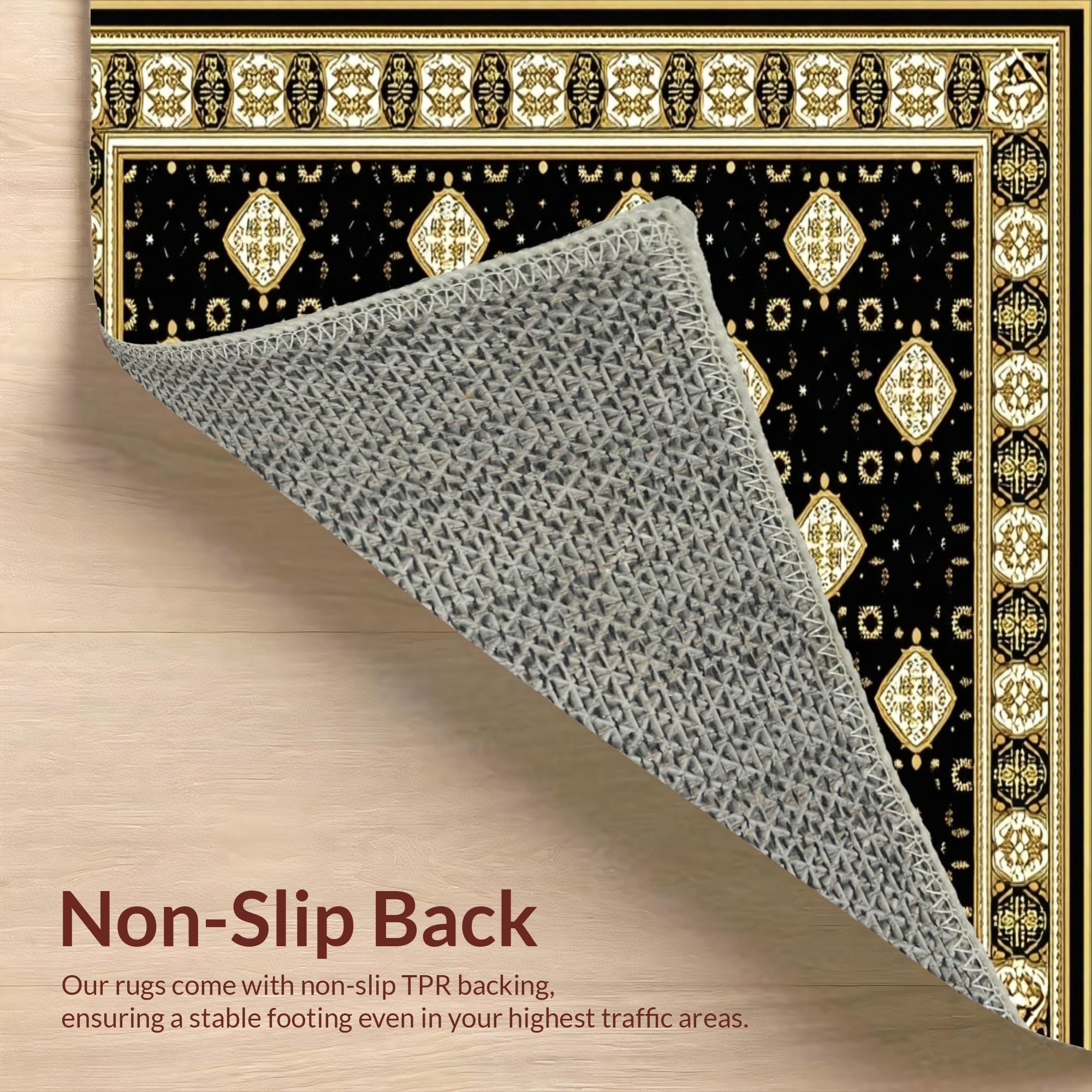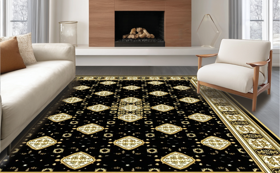 Ultra Soft Area Rug, Non Slip, Stain Resistant, Washable Area Rugs for Living Room, Bedroom, Classic Octagonal Rustic Floral Touch(Black) Overview: