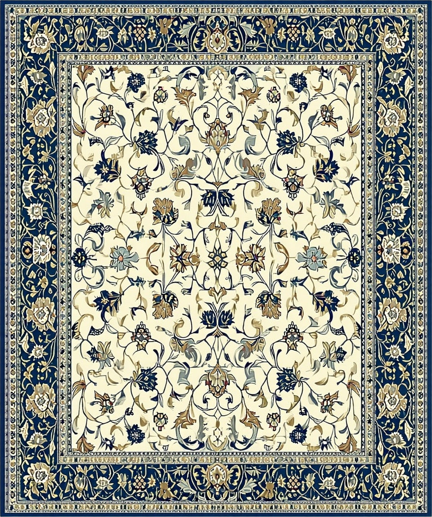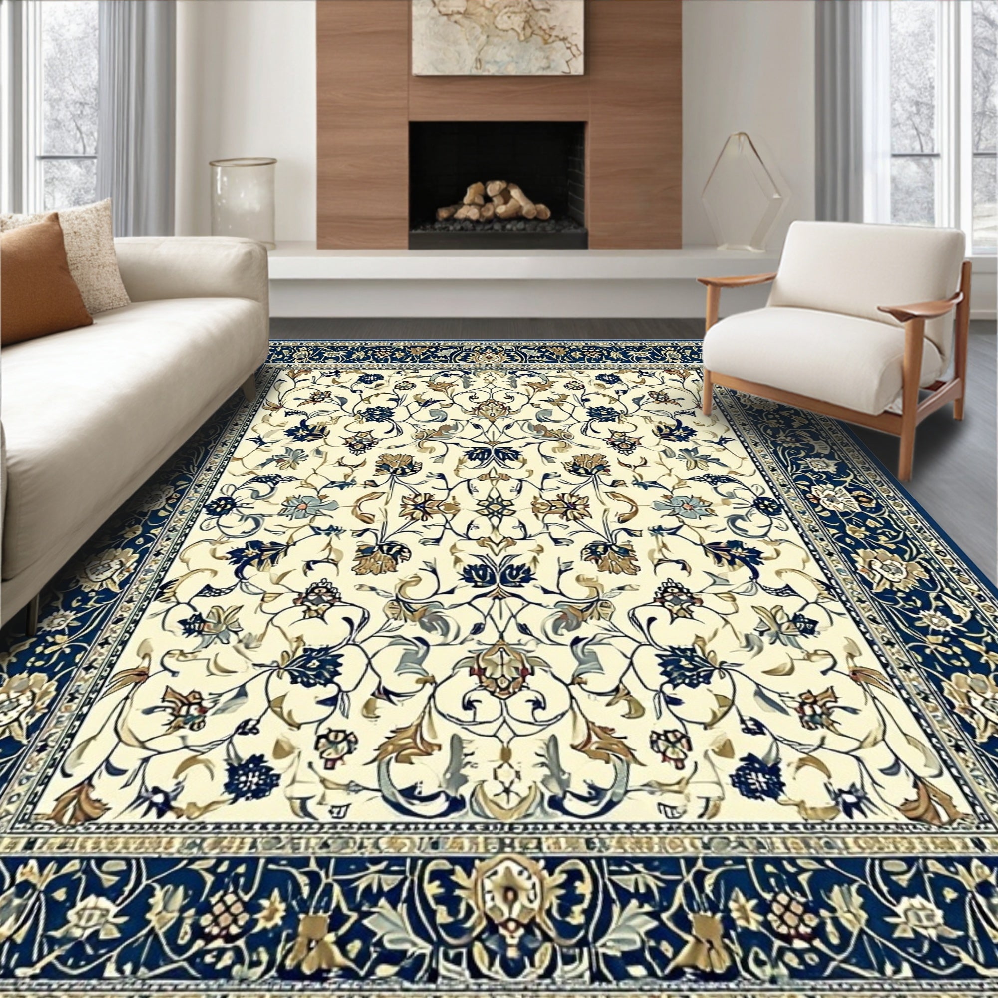 Ultra Soft Area Rug, Non Slip, Stain Resistant, Washable Area Rugs for Living Room, Bedroom, Classic Oriental Inspired Area with Weathered Blue and Tan Damask(Beige) Overview: