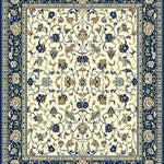 Classic Oriental Inspired Area with Weathered Blue and Tan Damask(Beige)