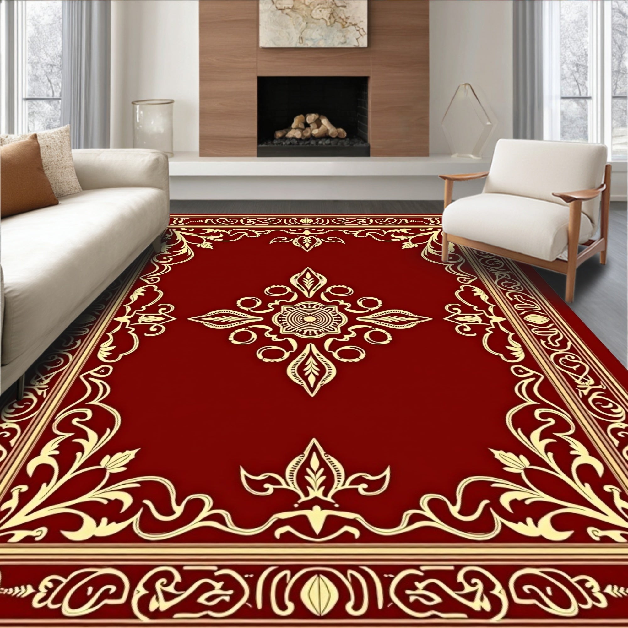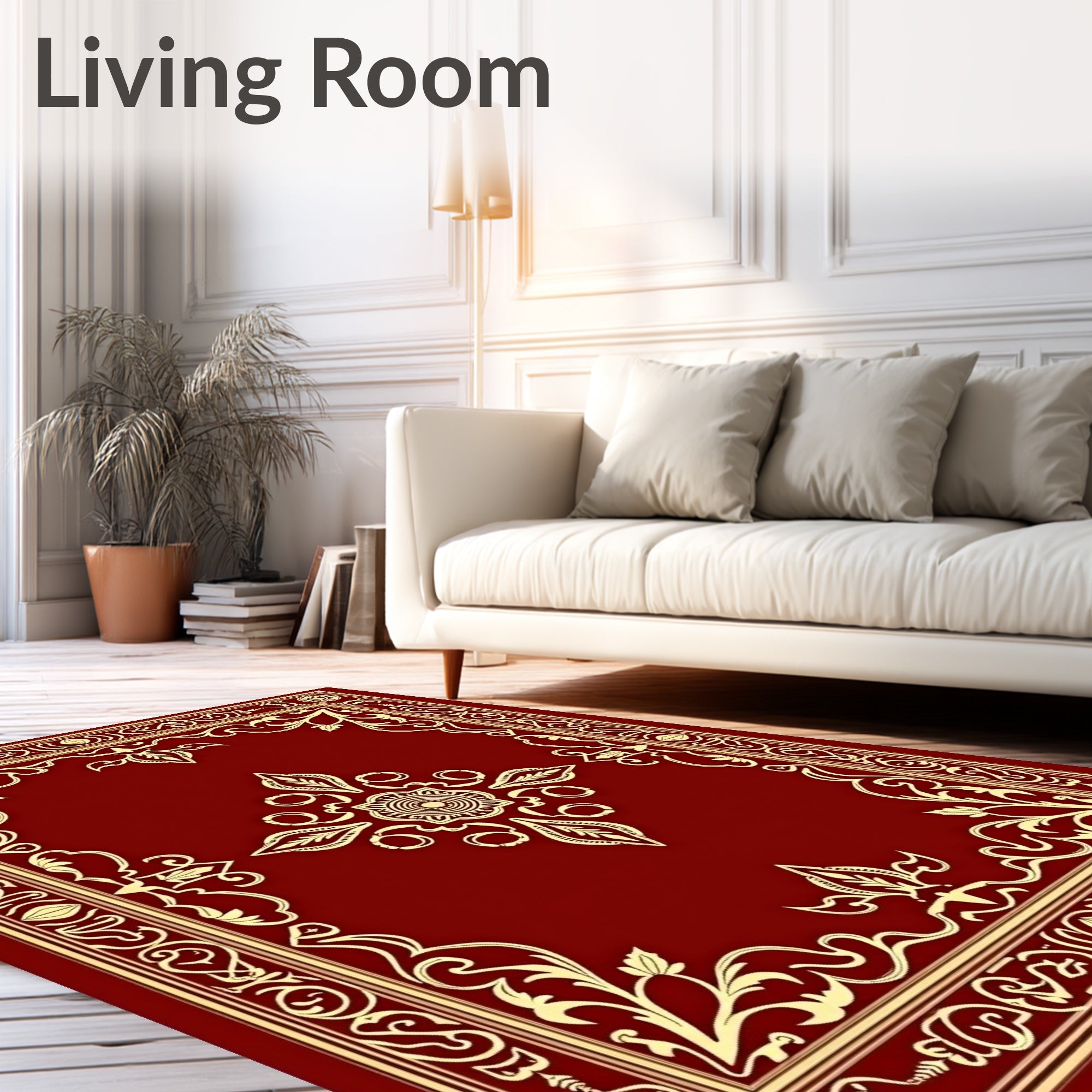 Ultra Soft Area Rug, Non Slip, Stain Resistant, Washable Area Rugs for Living Room, Bedroom, Classic Ornamental Jewel Toned Magnificent(Red) Overview: