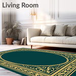 Ultra Soft Area Rug, Non Slip, Stain Resistant, Washable Area Rugs for Living Room, Bedroom, Classic Ornate Scrollwork with Interlocking Floral Filigree(Green) Overview:
