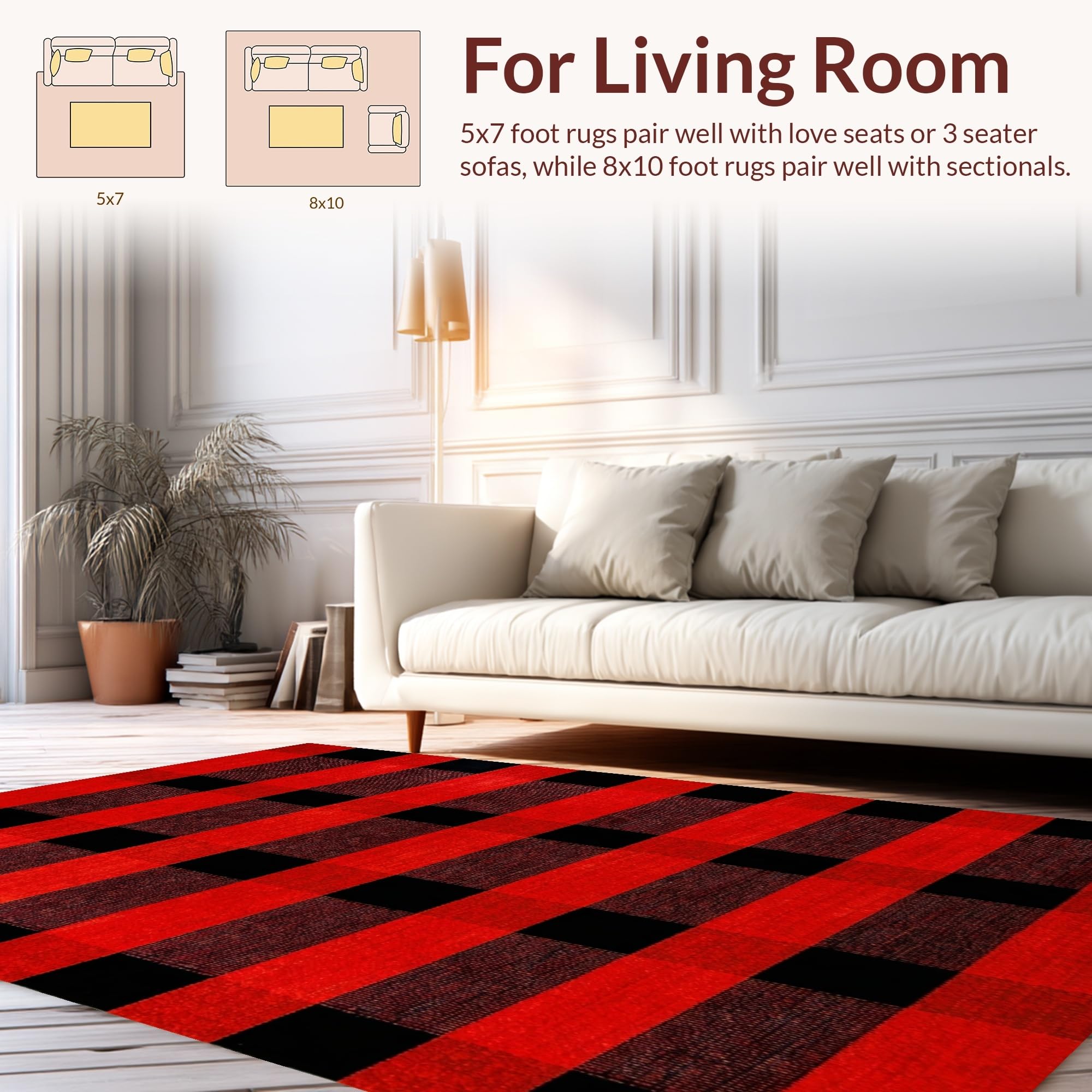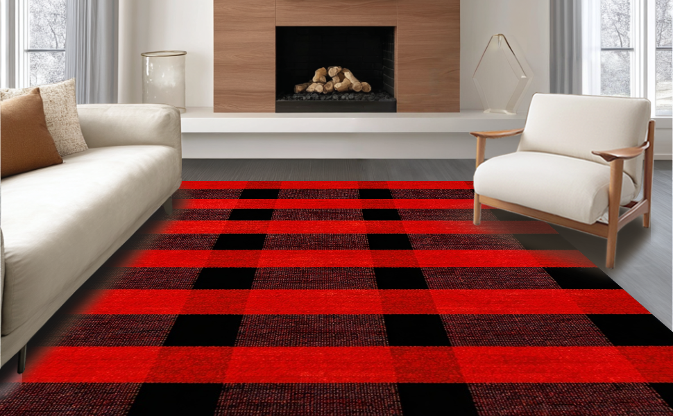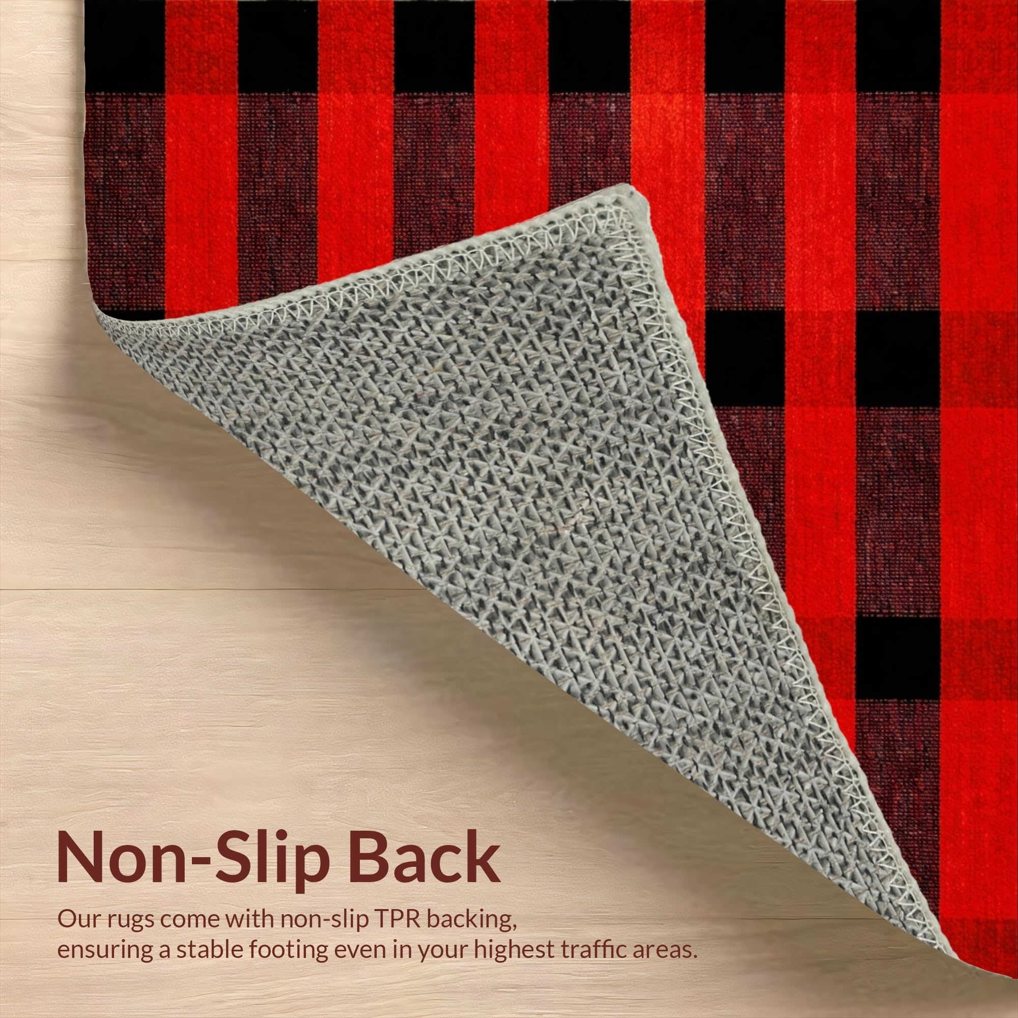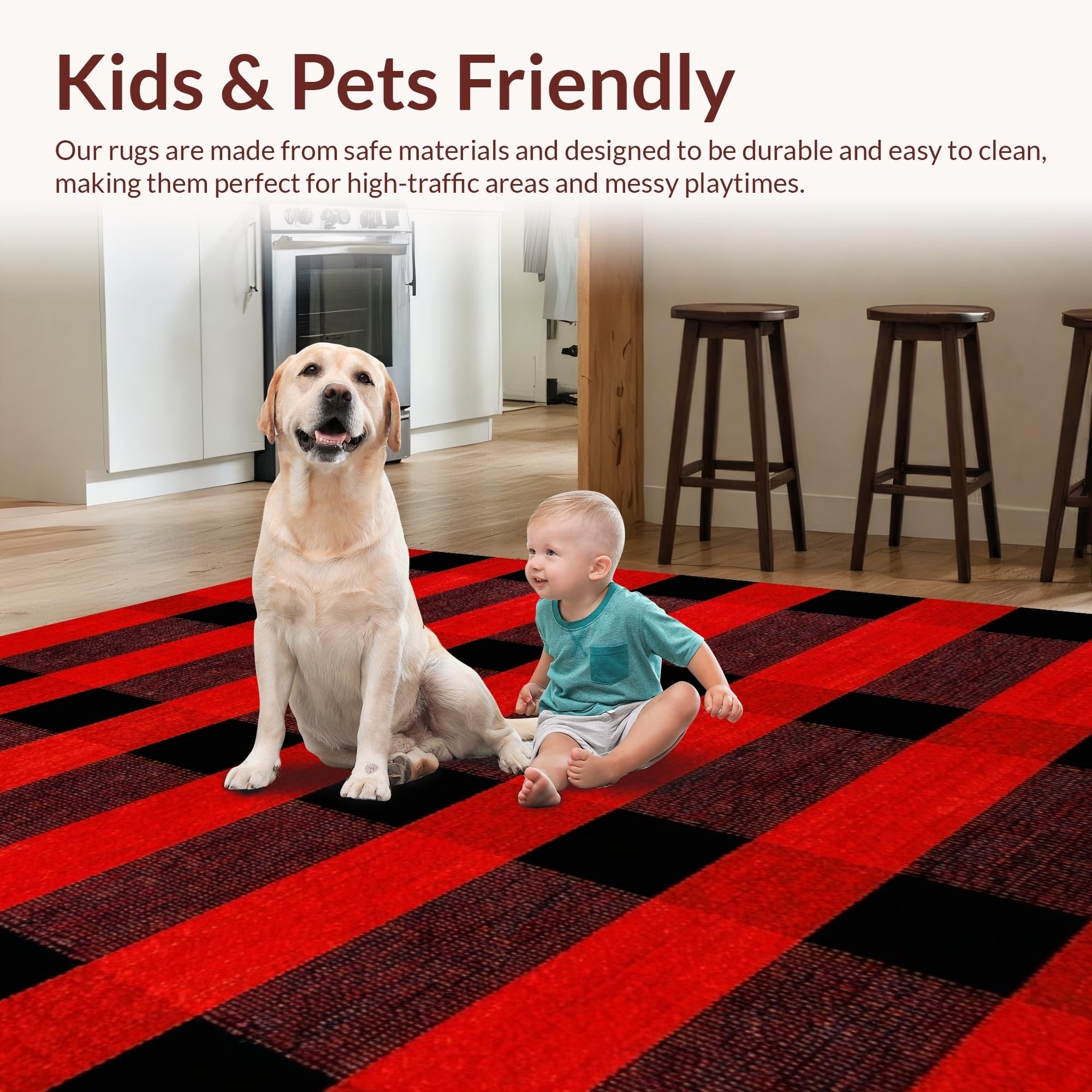 Ultra Soft Area Rug, Non Slip, Stain Resistant, Washable Area Rugs for Living Room, Bedroom, Classic Outdoor Tic Tac Toe Pattern(Red) Overview: