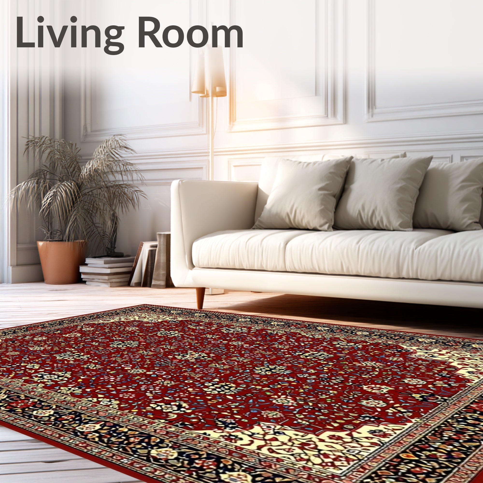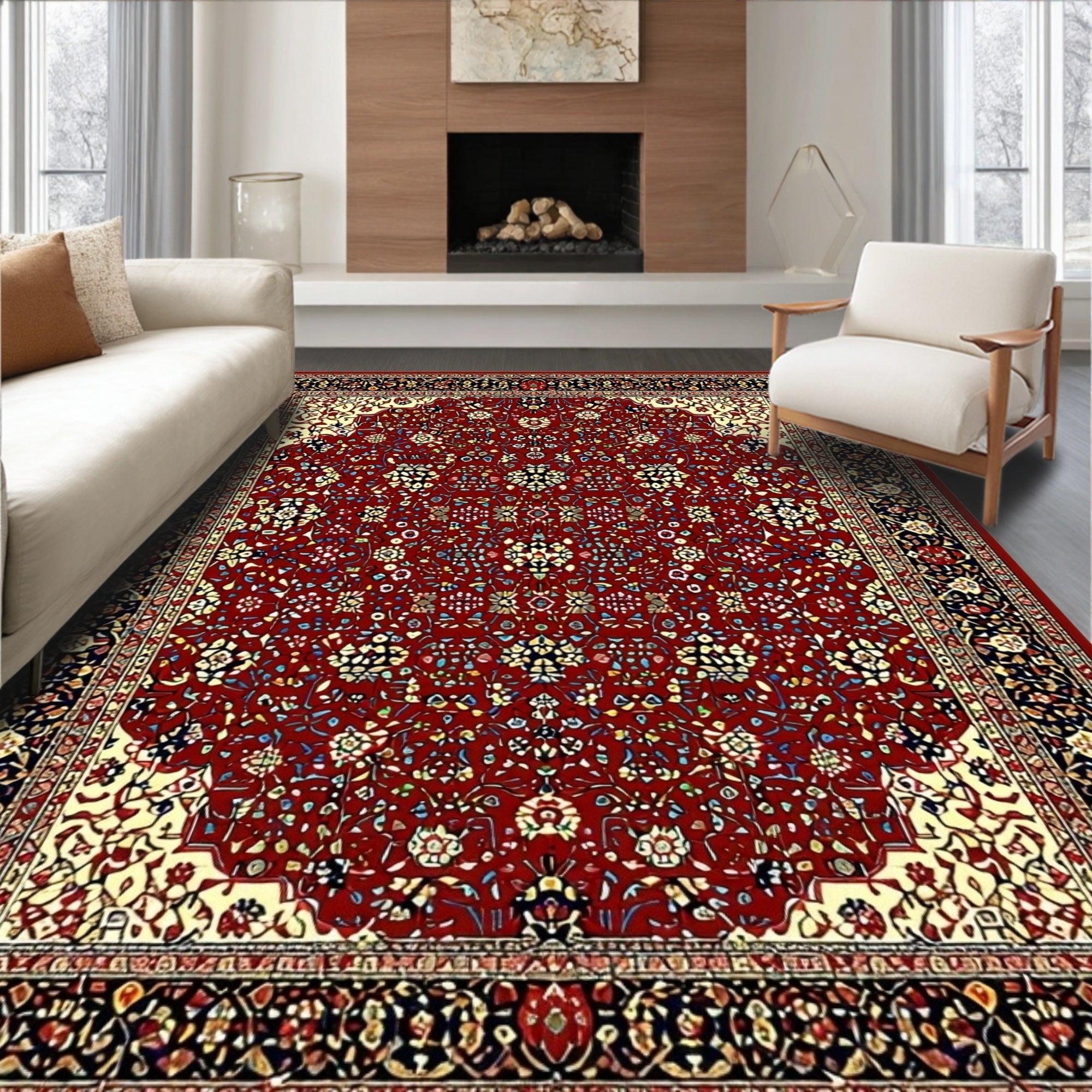 Ultra Soft Area Rug, Non Slip, Stain Resistant, Washable Area Rugs for Living Room, Bedroom, Classic Red and Brown Area Timeless Design(Red) Overview: