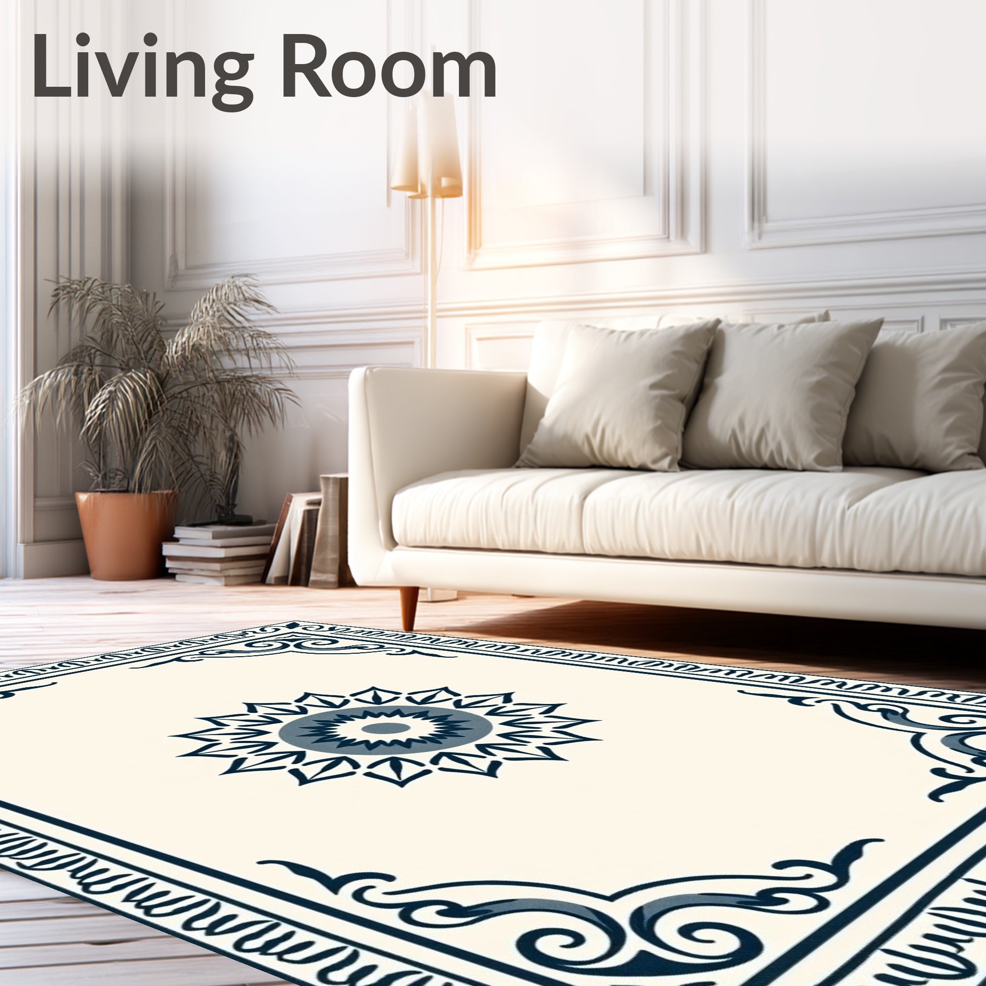 Ultra Soft Area Rug, Non Slip, Stain Resistant, Washable Area Rugs for Living Room, Bedroom, Classic Rosette Scroll Border Decorative Inspired(Cream) Overview: