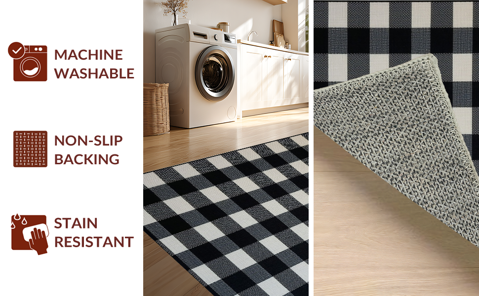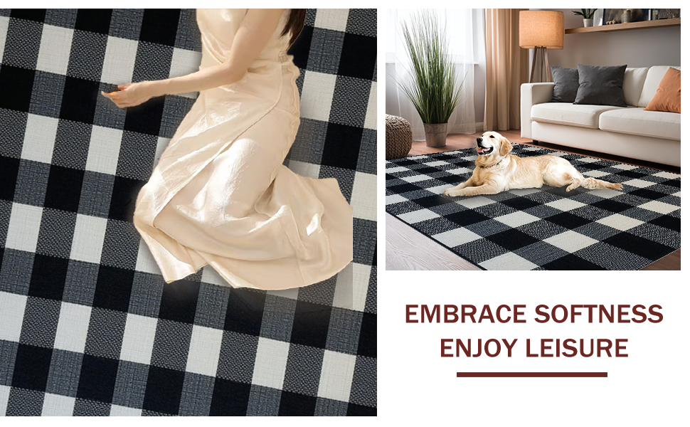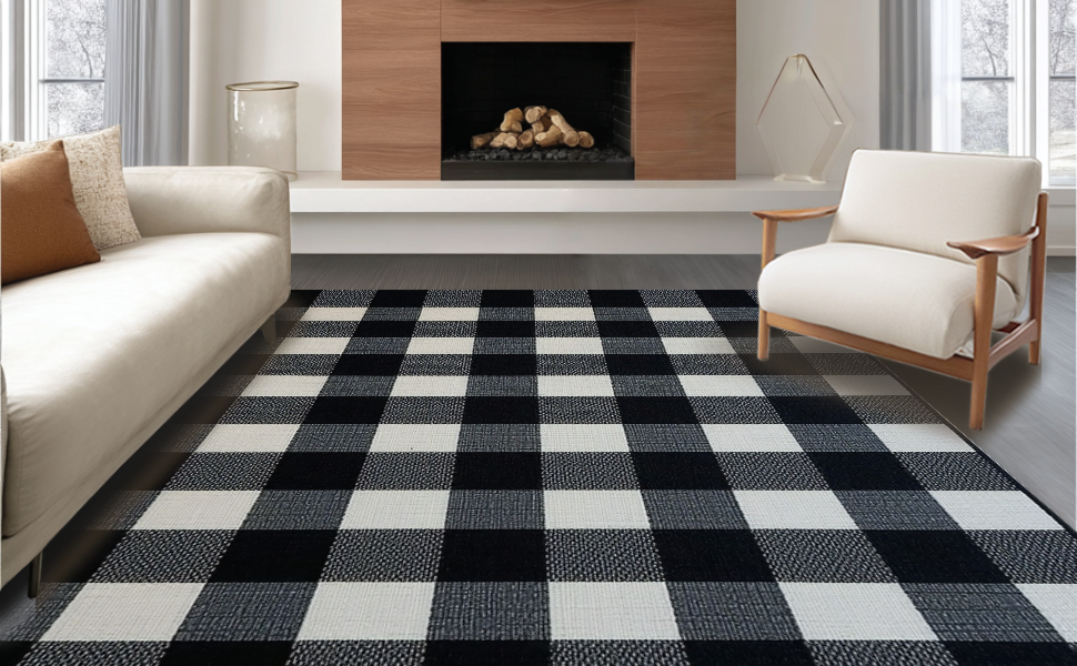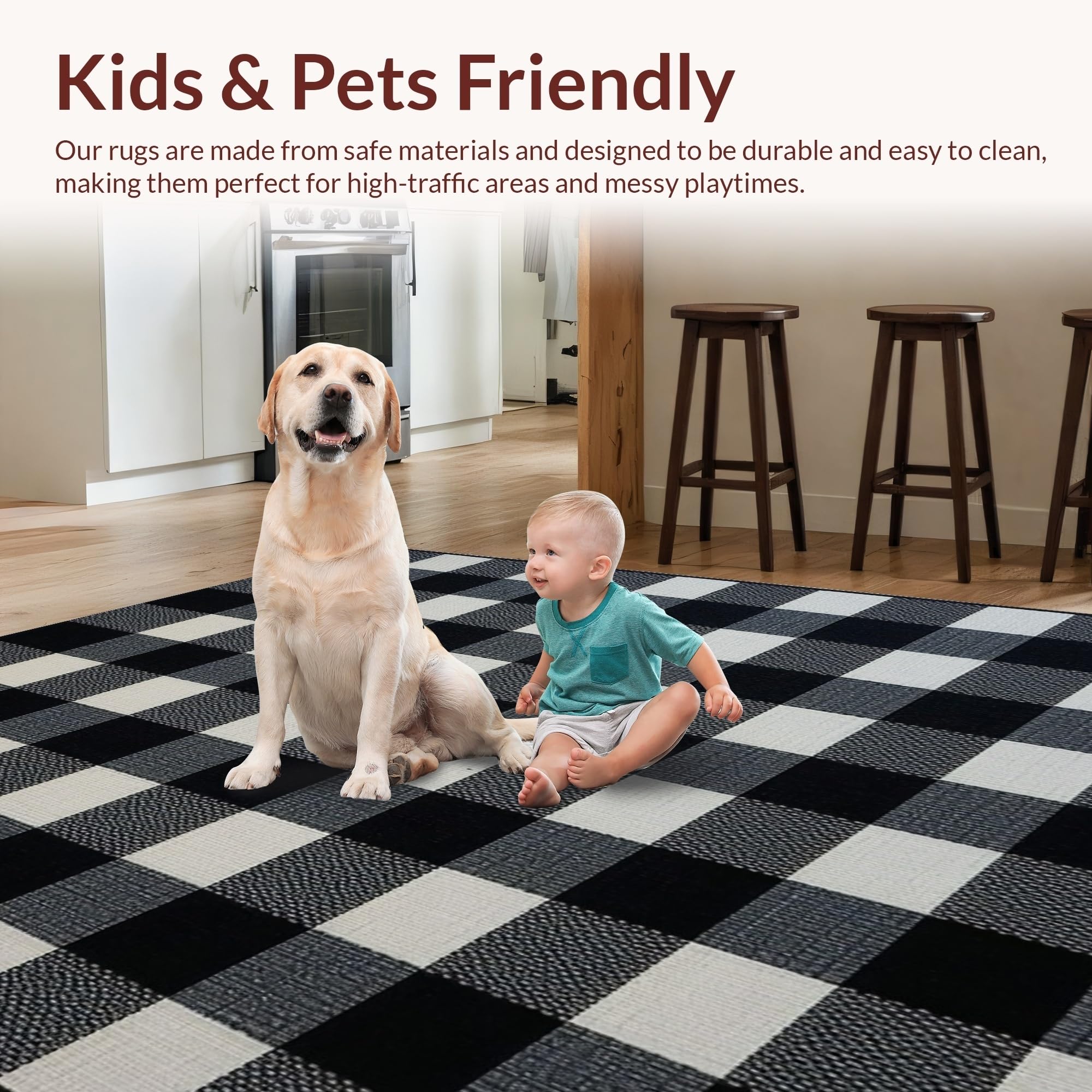 Ultra Soft Area Rug, Non Slip, Stain Resistant, Washable Area Rugs for Living Room, Bedroom, Classic Rustic Buffalo Check Style(Black) Overview: