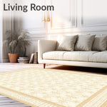 Ultra Soft Area Rug, Non Slip, Stain Resistant, Washable Area Rugs for Living Room, Bedroom, Classic Scroll Motif in Cream and Warm Beige with Refined Symmetry(Beige) Overview: