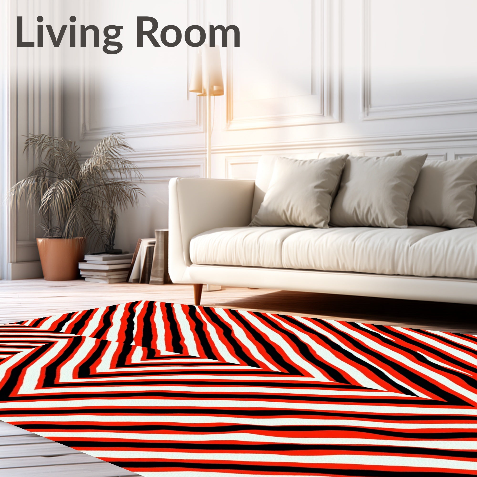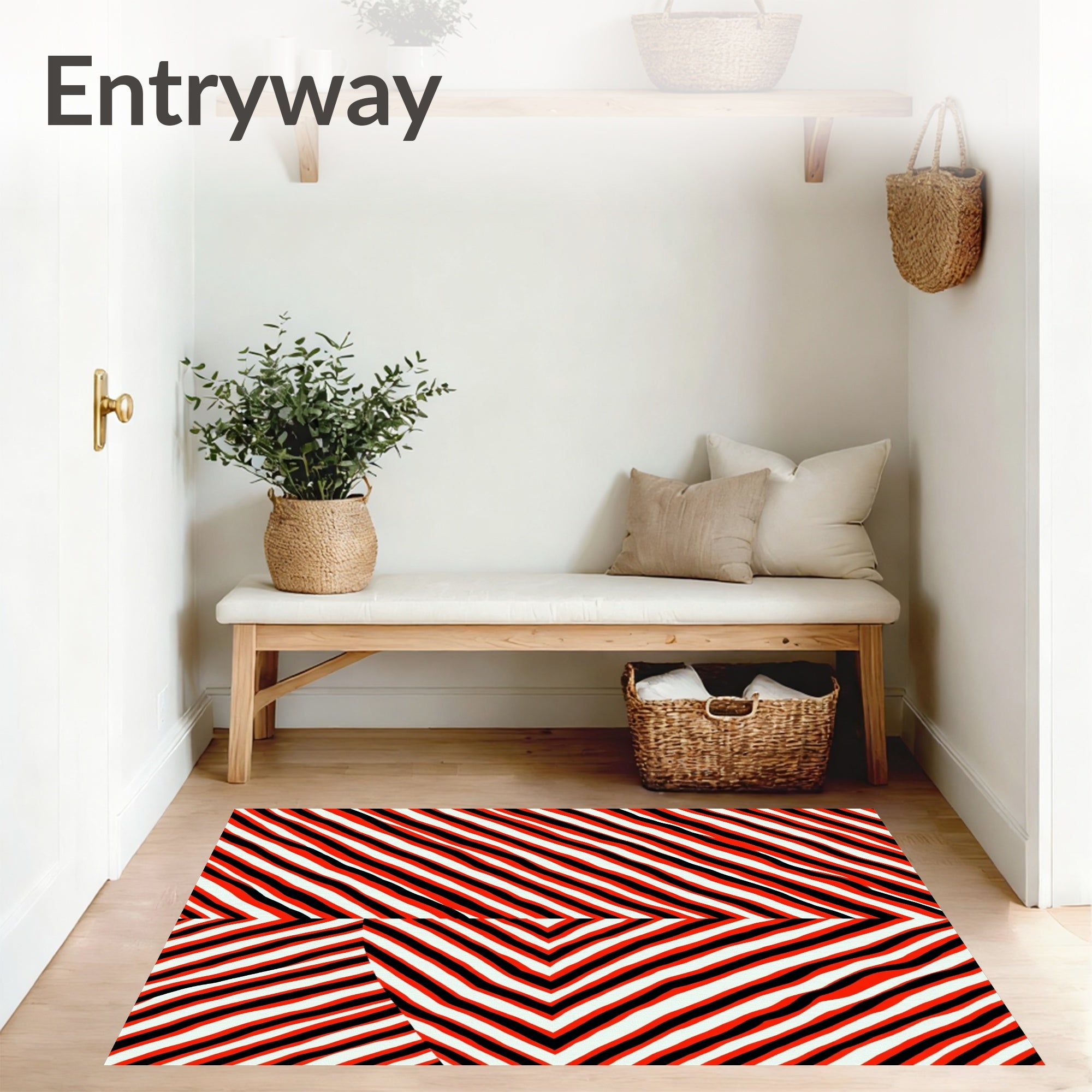 Ultra Soft Area Rug, Non Slip, Stain Resistant, Washable Area Rugs for Living Room, Bedroom, Classic Striped Monochrome Chevron Motif(Red) Overview: