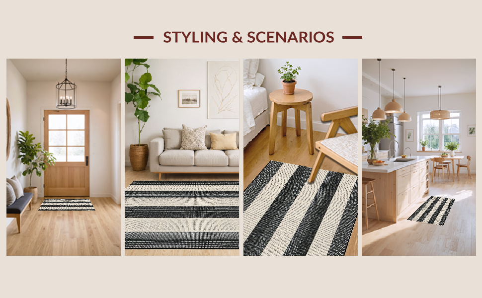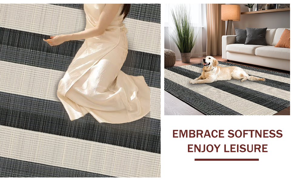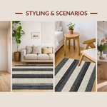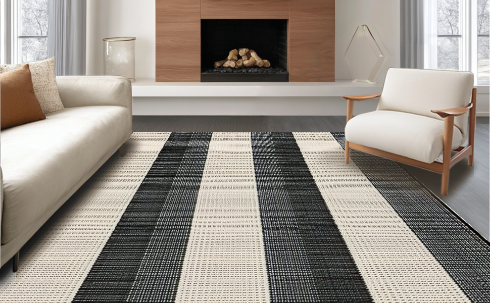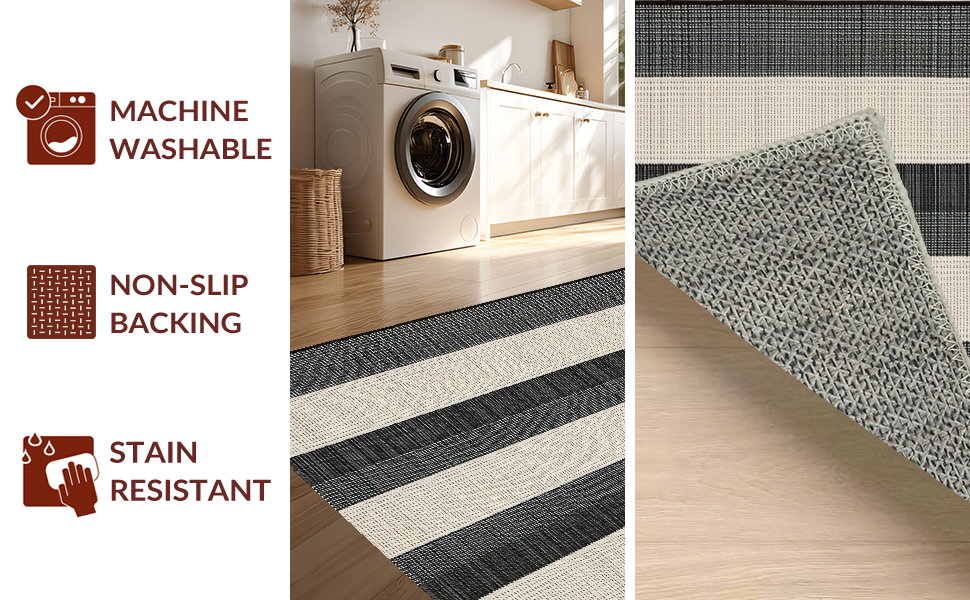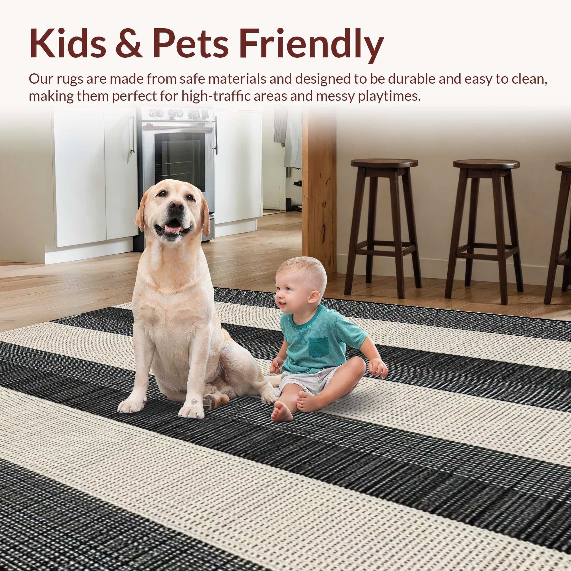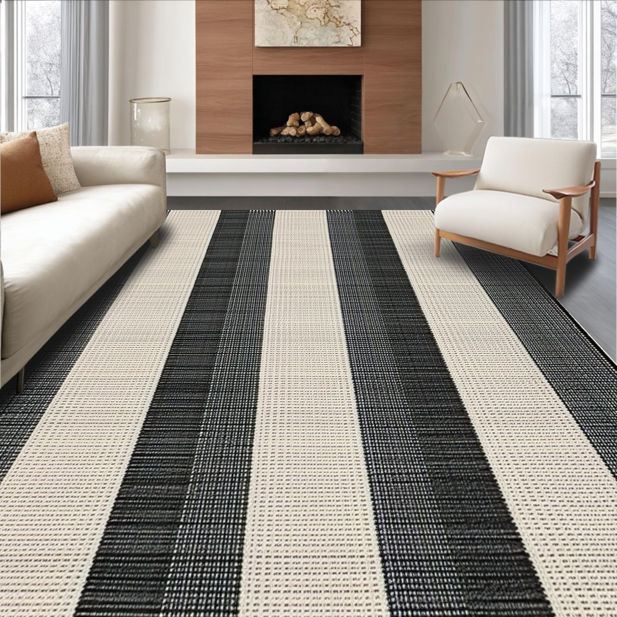 Ultra Soft Area Rug, Non Slip, Stain Resistant, Washable Area Rugs for Living Room, Bedroom, Classic Striped Serenity Design(Black) Overview: