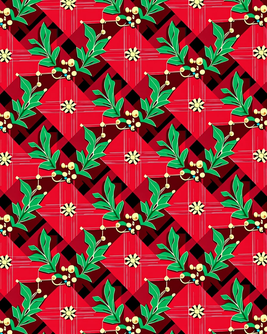 Classic Tartan Checkered with Festive Holly Accent Motifs(Red)