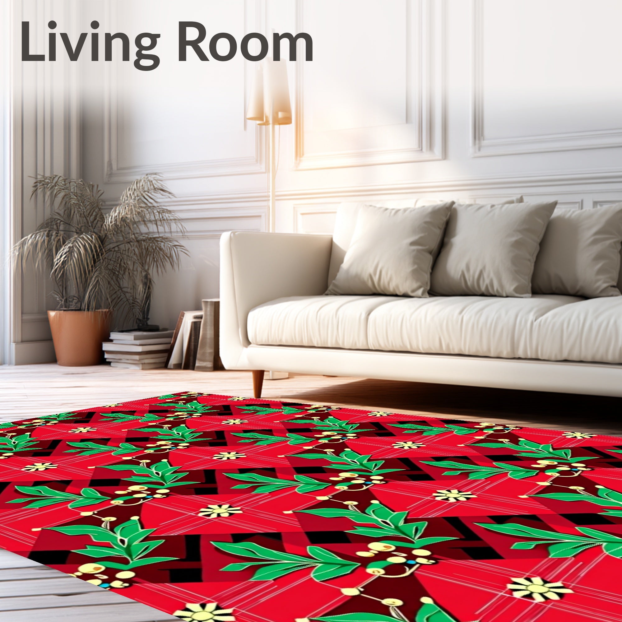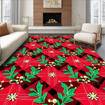 Ultra Soft Area Rug, Non Slip, Stain Resistant, Washable Area Rugs for Living Room, Bedroom, Classic Tartan Checkered with Festive Holly Accent Motifs(Red) Overview: